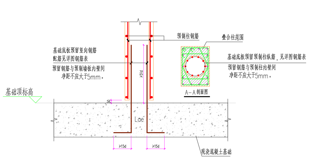 1)构件两端出筋,内部圆形空腔成型,下部钢筋插入基础梁及承台钢筋内进行锚固;计算方法和适用范围与传统现浇钢筋混凝土柱完全一致,可通用于所有地下室结构。