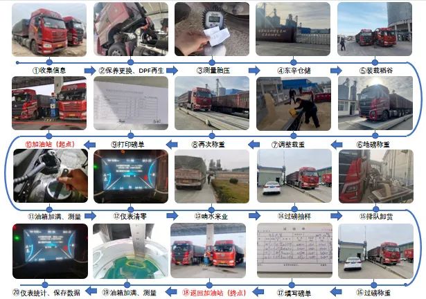 江苏素人卡友的同配或相近配置的重卡,坚持操作收集信息、DPF再生到装载货物、加油、地磅称重,再到最终仪表统计和保存数据等20个环节,同载重、同工况、同路线、同里程,通过交换司机、交换挂车、空挂等变量,重复出勤5次。