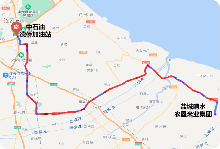 测试路线:德侨加油站—>响水米业—>德侨加油站