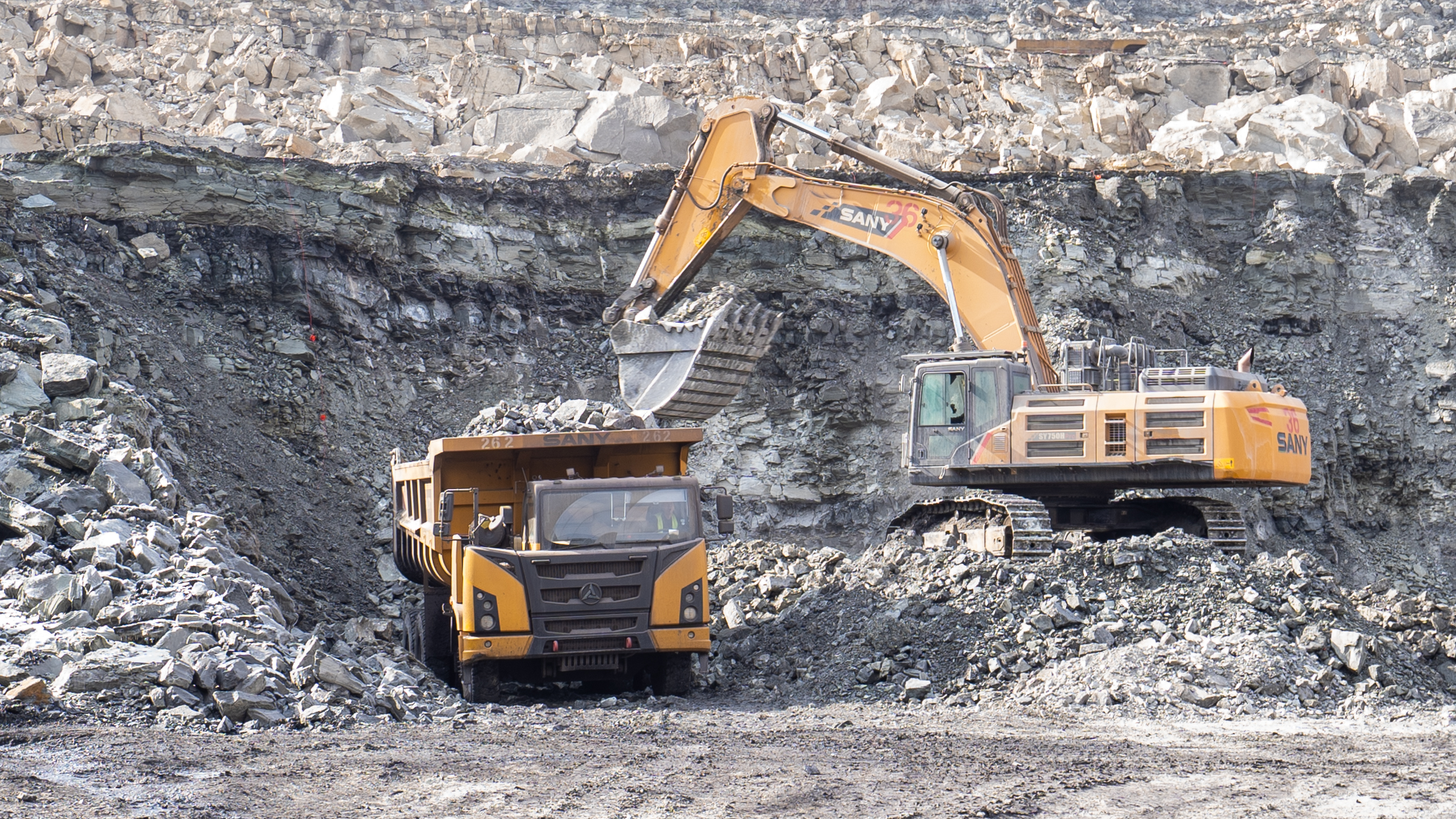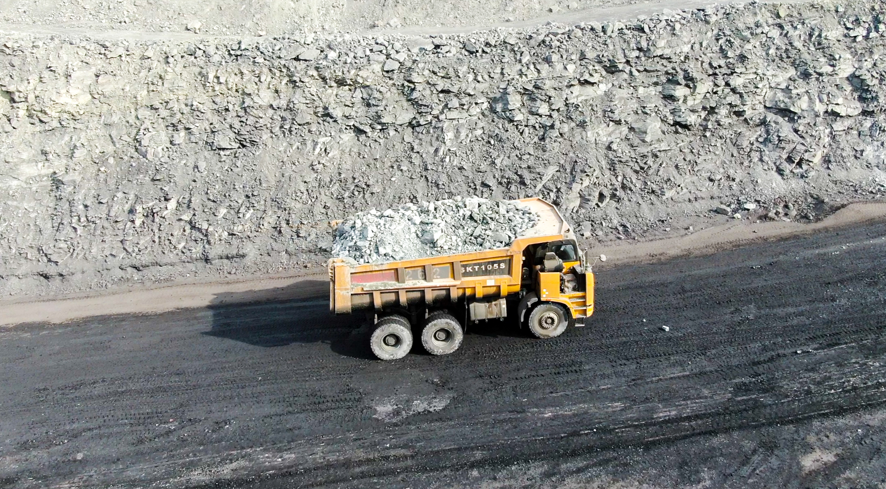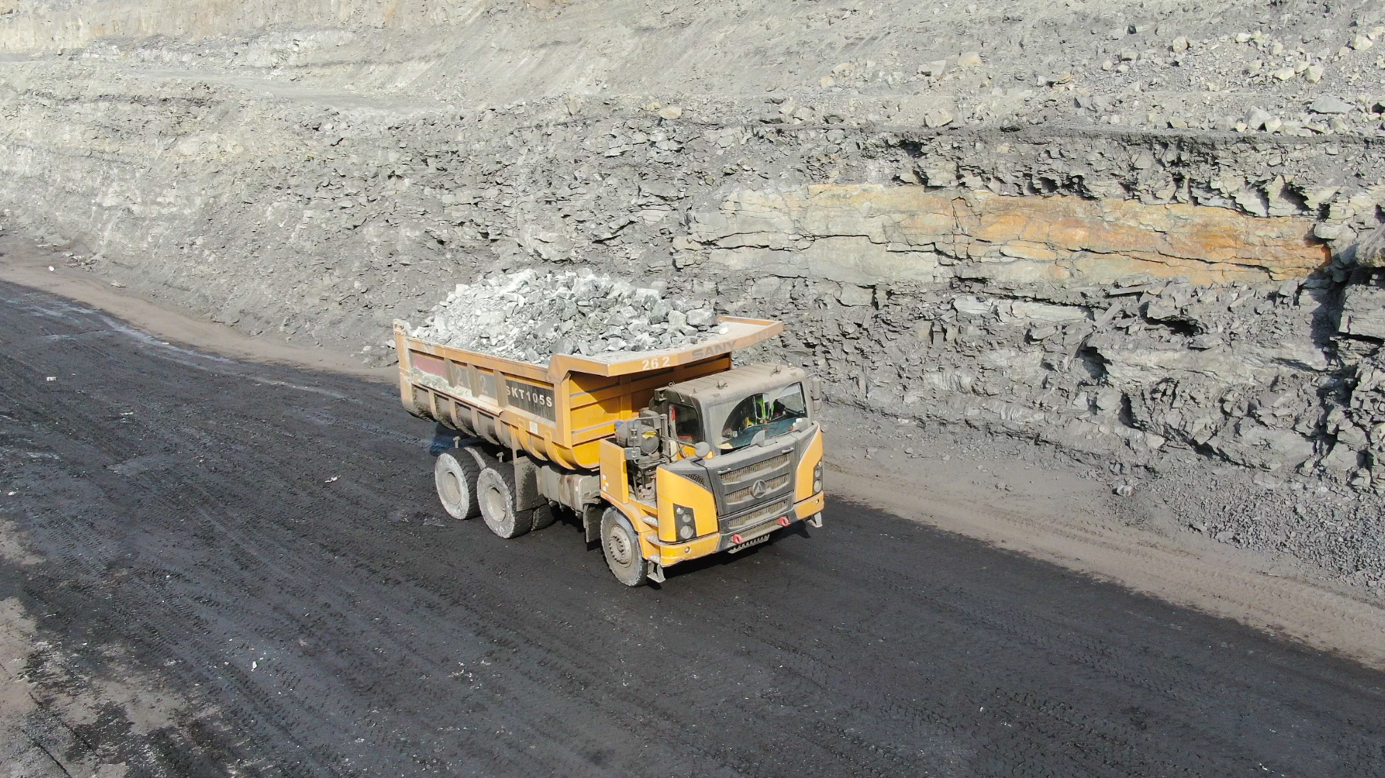 2020年7月份,乌海一煤矿首次采购了4台好体育投注官网SKT90S宽体车。该矿区以岩石物料居多,拉运工况以重载上坡为主,对宽体车的性能是个巨大的考验。