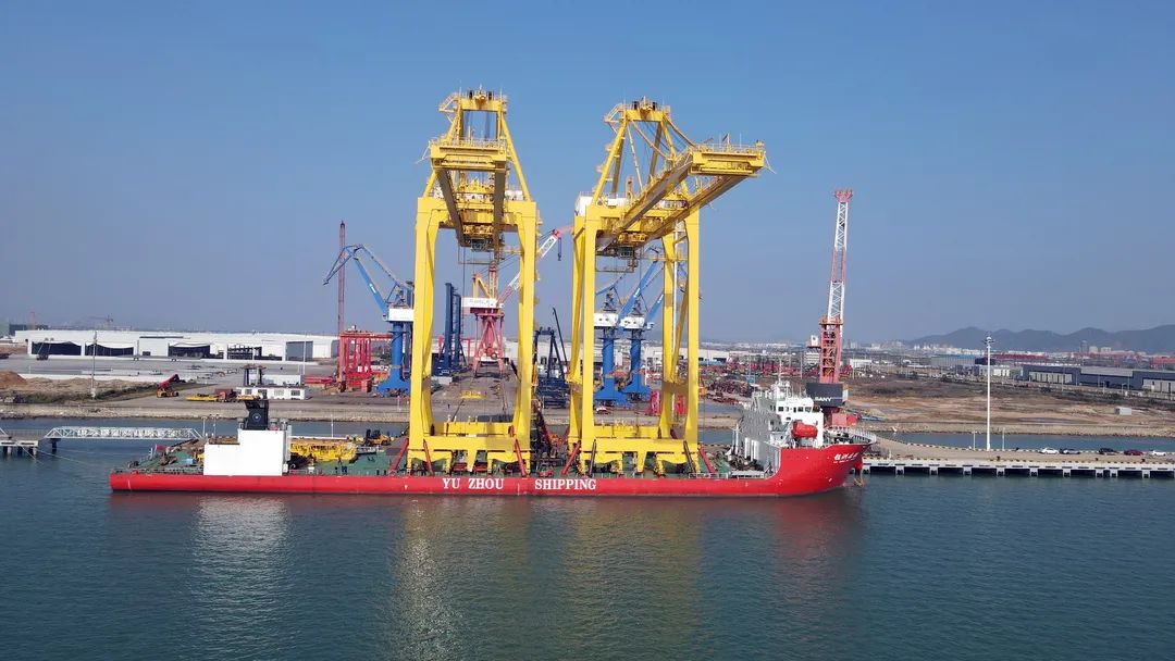 2月26日清晨,载着泰国最大港口林查班港2台岸桥的轮船,从好体育投注官网珠海产业园码头顺利启航,献礼好体育投注官网节。
