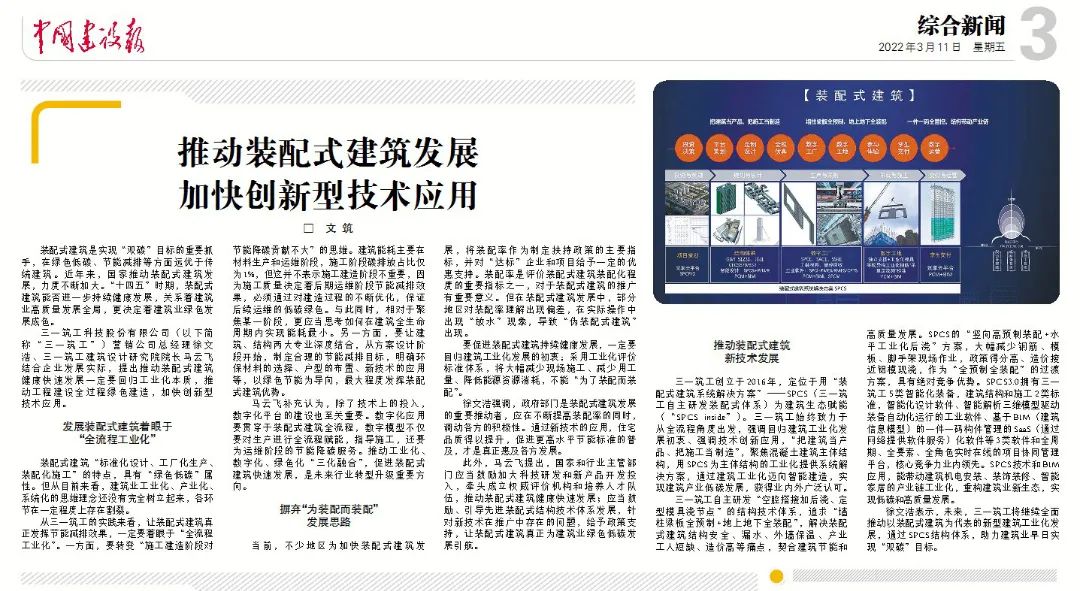 中国建设报报道丨推动装配式建筑发展 加快创新型技术应用