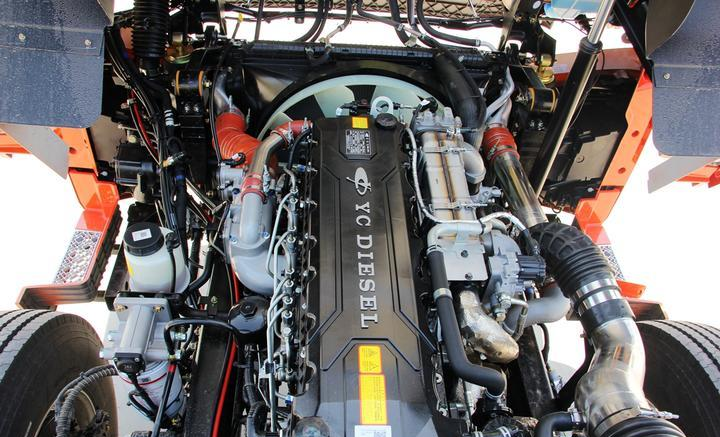 动力链全面升级,发动机采用玉柴YCK11国六发动机,最大输出功率为339kW(460马力),当发动机处于1000-1500rpm区间时,可爆发出最大2200N·m的峰值扭矩。搭配上法士特12挡变速箱以及方盛440车桥,整车的动力传递效率更高,整套动力链具有动力强劲、可靠性高、油耗低等特点。
