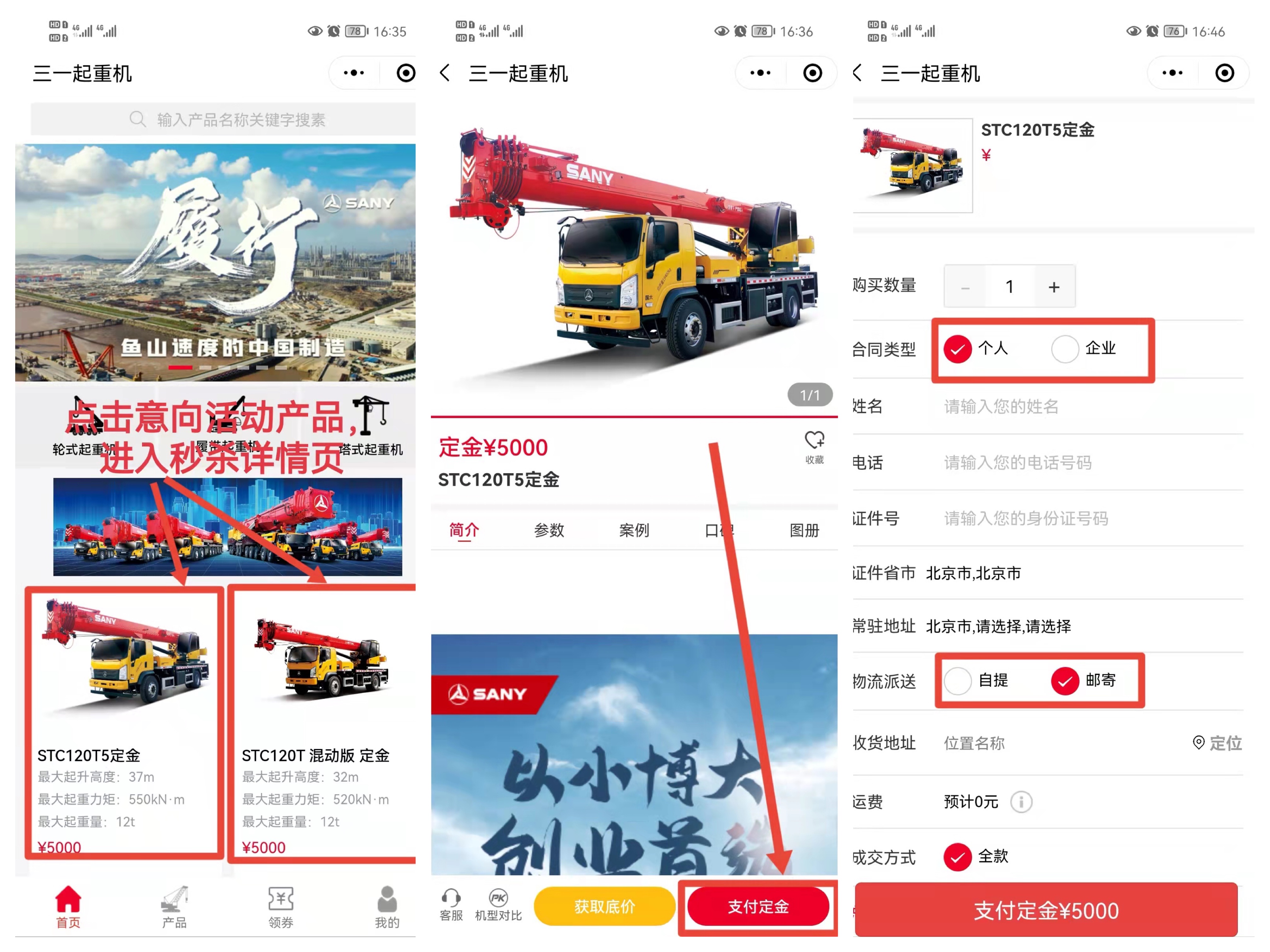 STEP3:快速填写好个人/公司信息,确认无误后支付5000元定金。
