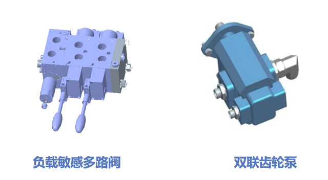 · 定量负载敏感系统:定量泵+负载敏感多路阀组合使用,减小系统功率损失;电控、手动双操作模式,体积小,操作灵敏可靠。