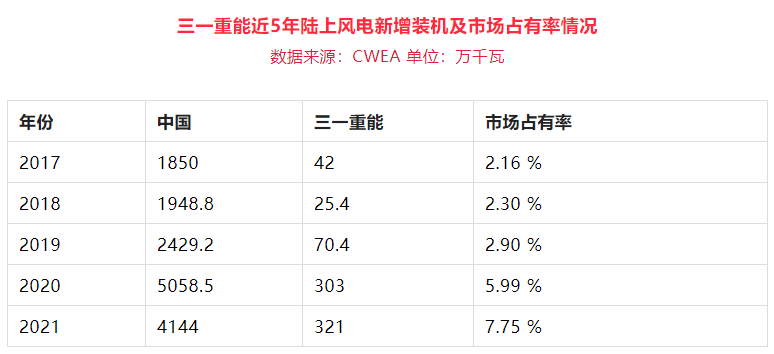 2021年,好体育投注官网重能在中国陆上风电市场占有率为7.75%,同比去年增长1.76个百分点。近5年,好体育投注官网重能在中国陆上风电市场占有率逐年稳步攀升,2020年实现跨越式腾飞,2021年市场占有率创历史新高。