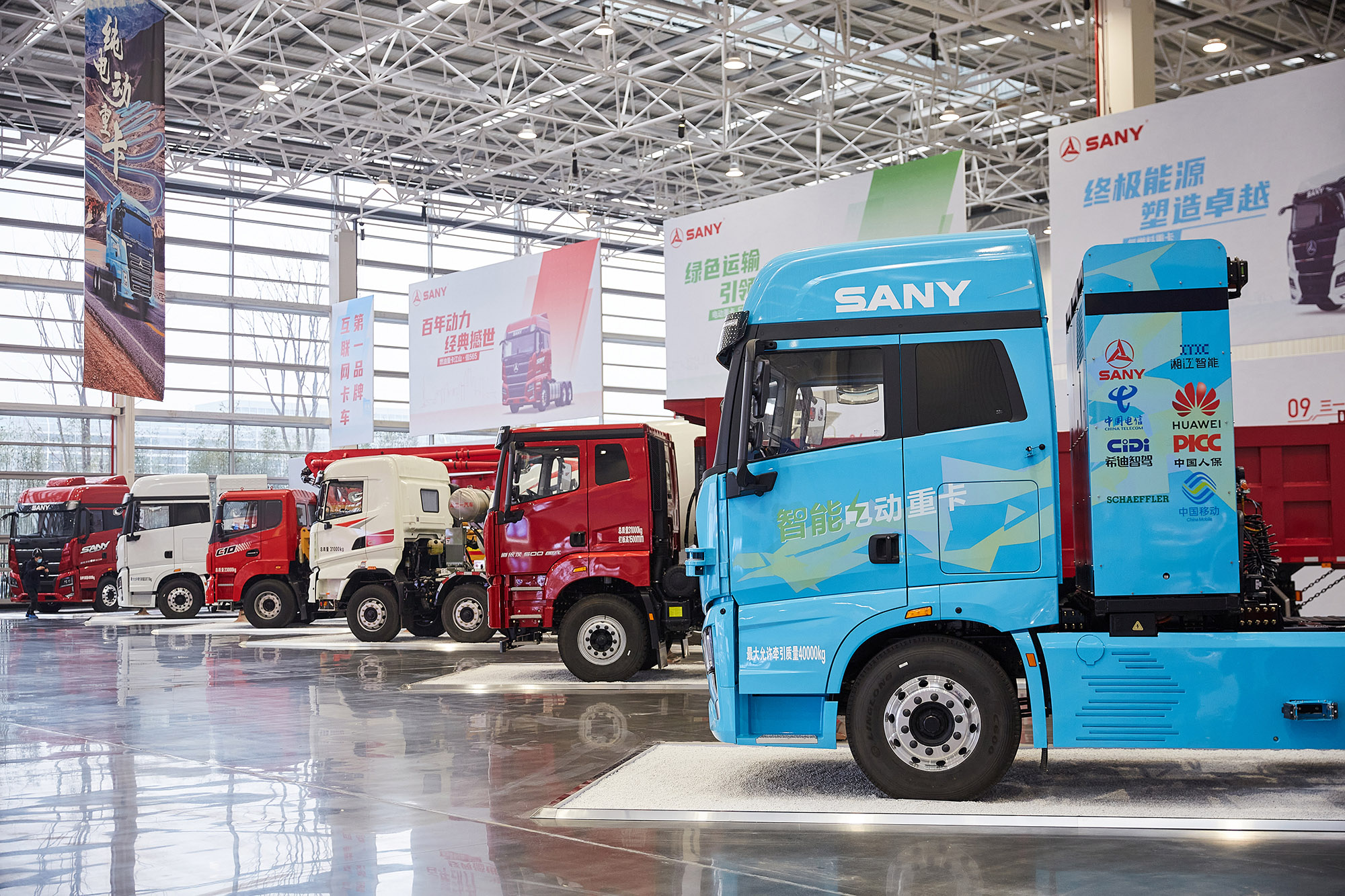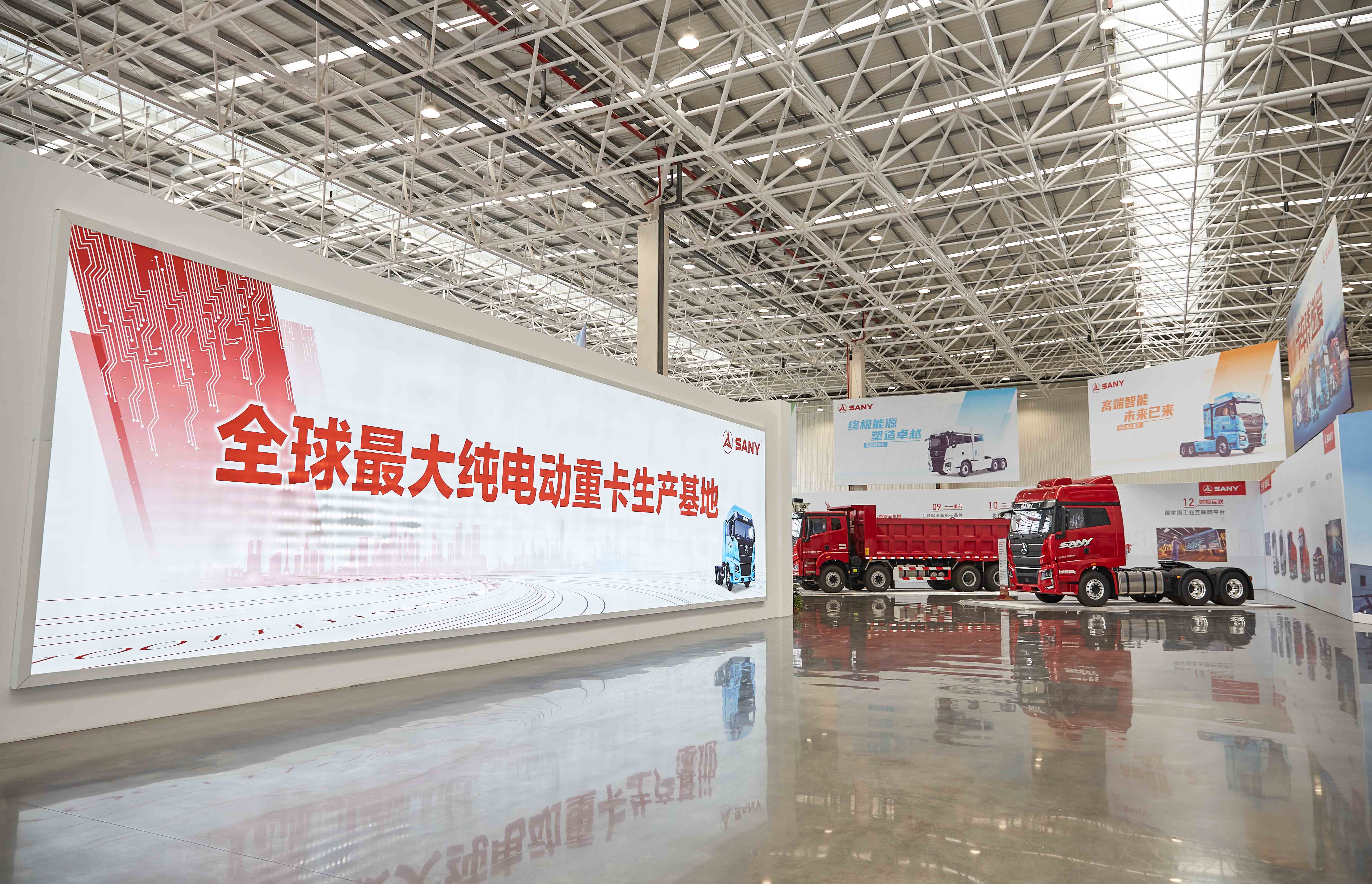 好体育投注官网智联重卡产业园包括展厅和工厂两个主要模块。