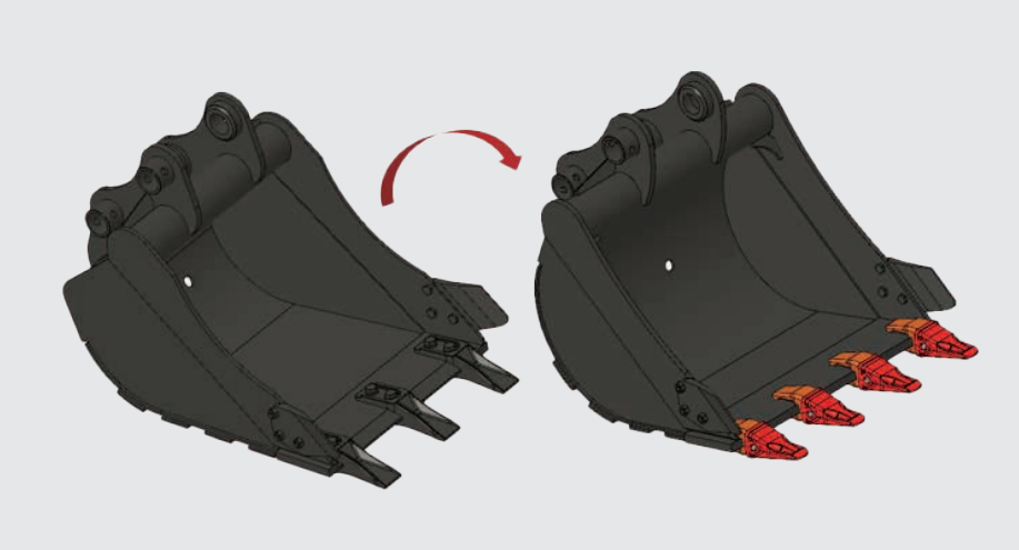 SY26U斗型优化,铲斗挖掘力27.9kN,斗杆挖掘力14.2kN,挖掘效率提升。斗齿由竖销改为横销,效率更高,寿命更长,更换更便捷。