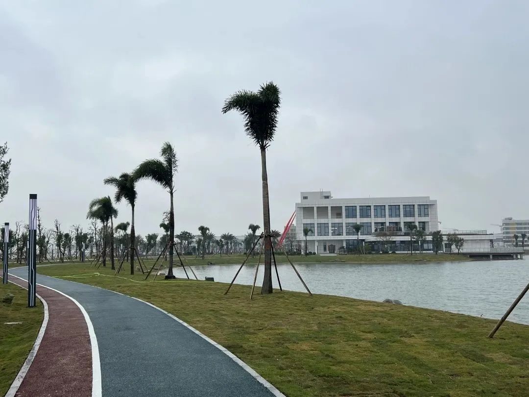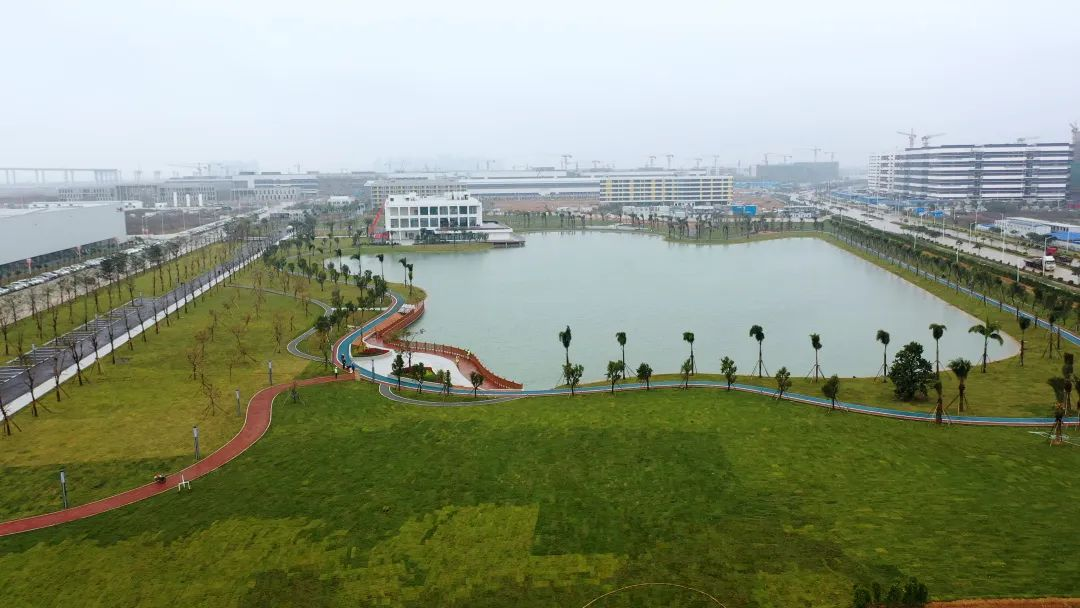 在食堂外围,专门修建了休闲公园和1公里的环湖跑道,不仅能下班干饭,还能休闲健身……