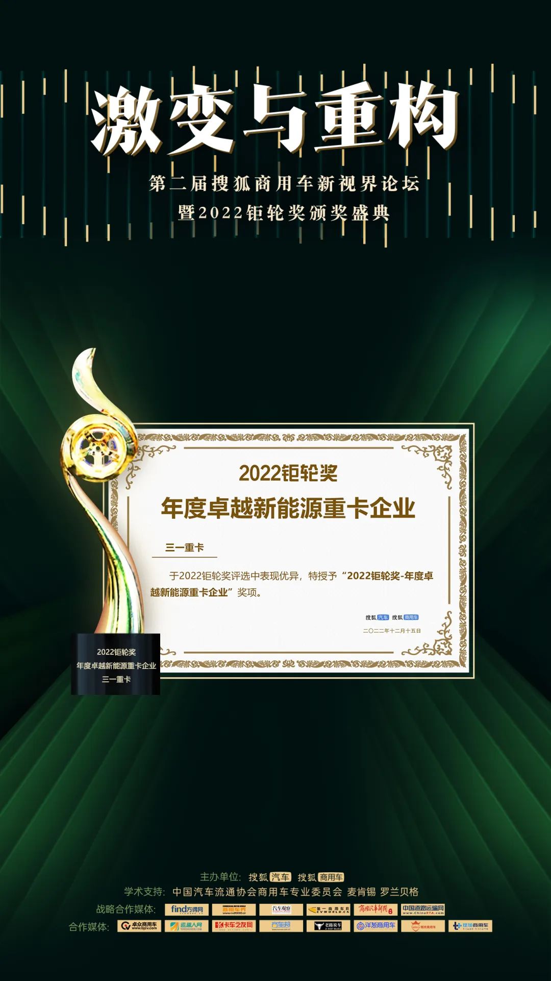 好体育投注官网重卡凭借在新能源重卡领域的卓越表现,获专家团队一致认可,斩获“2022钜轮奖年度卓越新能源重卡企业”殊荣。