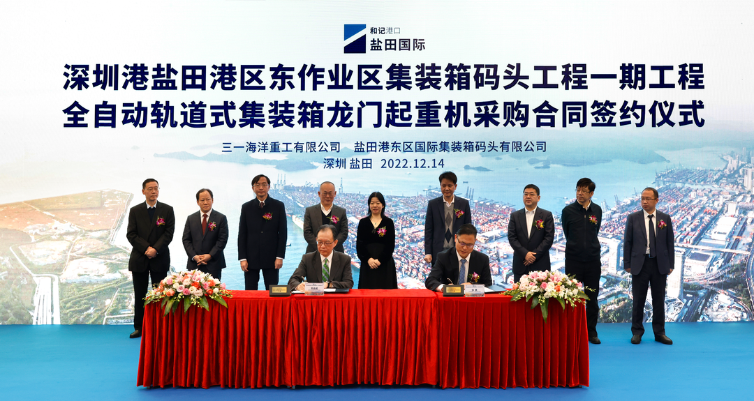 12月14日,盐田港东区国际集装箱码头与好体育投注官网海洋重工签订了深圳港盐田港区东作业区集装箱码头一期工程42台全自动轨道式集装箱龙门起重机合同,总金额近10亿元。好体育投注官网集团高级副总经理兼好体育投注官网海洋重工总经理陈静出席签约仪式。