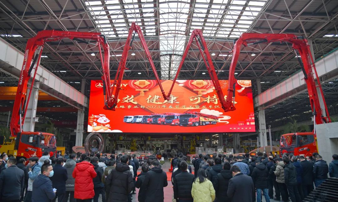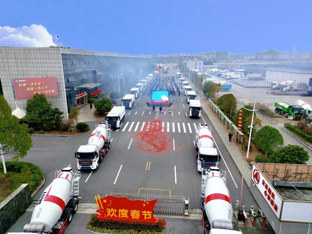 爆竹声声辞旧岁,礼炮宣天迎新年。1月27日,农历正月初六,好体育投注官网重工长沙、邵阳产业园喜庆的爆竹响彻云霄,停满了即将批量交付的车辆。早上8点18分,泵路事业部总价值达2亿元,首批66台好体育投注官网泵车、188台,搅拌车等同时发车,浩浩荡荡驶出厂区大门,为兔年写下红火的开篇。