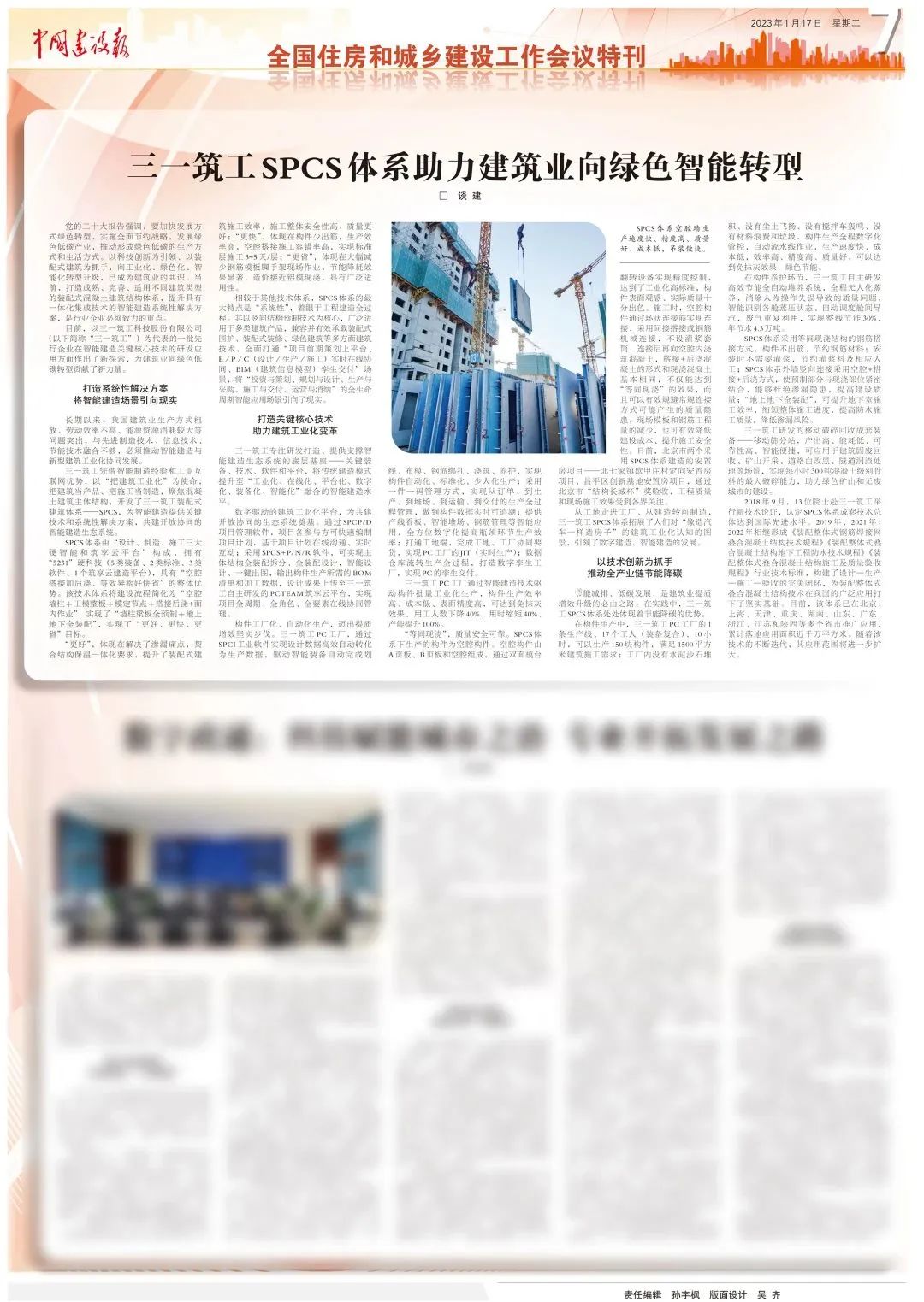 近日,全国住房和城乡建设工作会议隆重召开,中国建设报发表会议特刊:《好体育投注官网筑工SPCS体系助力建筑业向绿色智能转型》。原文如下: