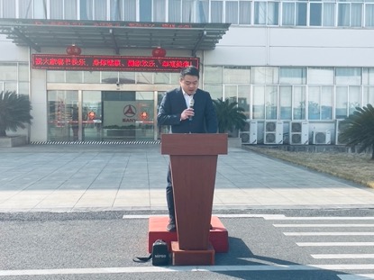 涟源发车仪式现场,泵路事业部涟源公司总经理朱经纬先生发表新春致辞。