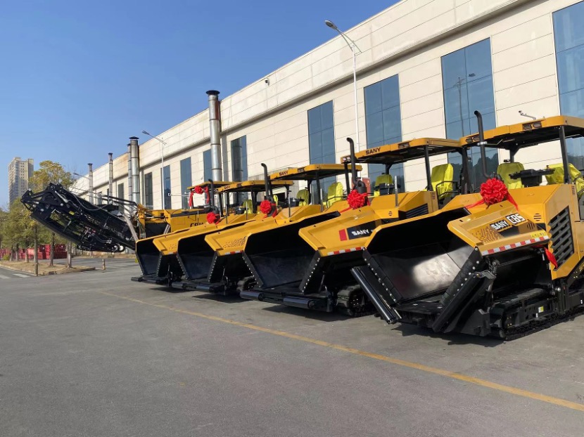 益阳厂区前坪,即将交付的摊铺机、铣刨机齐齐列队整装待发,迈向2023年新征程。本次发车的产品涵盖8米、9米摊铺机、2米铣刨机等多款热销款产品,打响路机新年新气象第一枪。