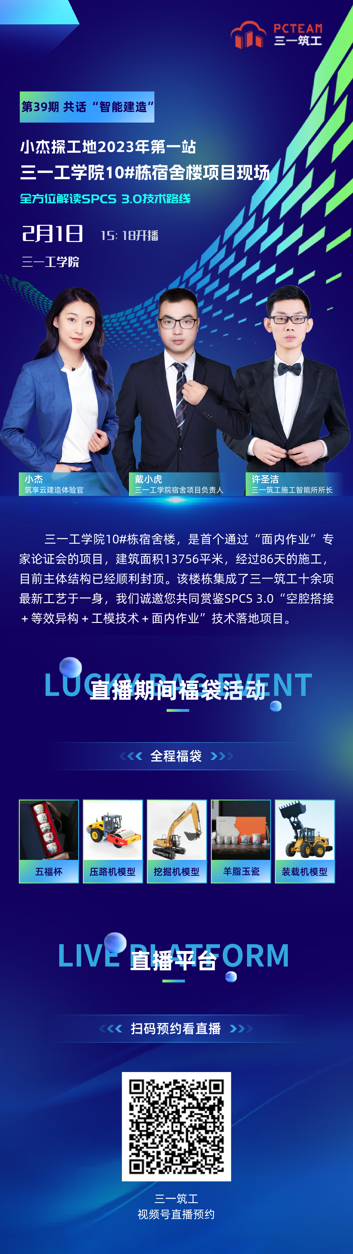 2月1日15:18,癸卯兔年,好体育投注官网筑工新春首播将由筑享云建造体验官小杰带领大家探访工地,第一站来到好体育投注官网工学院10#栋宿舍楼项目现场,特邀好体育投注官网工学院宿舍项目负责人戴小虎、好体育投注官网筑工施工智能所所长许圣洁全方位解读SPCS 3.0技术路线。