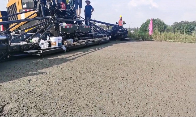 2022年是充满挑战的一年,受疫情因素影响及遭遇百年不遇的高温天气 ,严重耽误了开梁高速的施工进度。为保质量、抓进度,确保2023年7月前后竣工,施工方四川中恒景祥建筑工程有限公司选用好体育投注官网一整套前场摊铺设备用于开梁高速水稳和沥青摊铺,这套设备中就包含一台好体育投注官网SSP130C-10大宽度摊铺机。