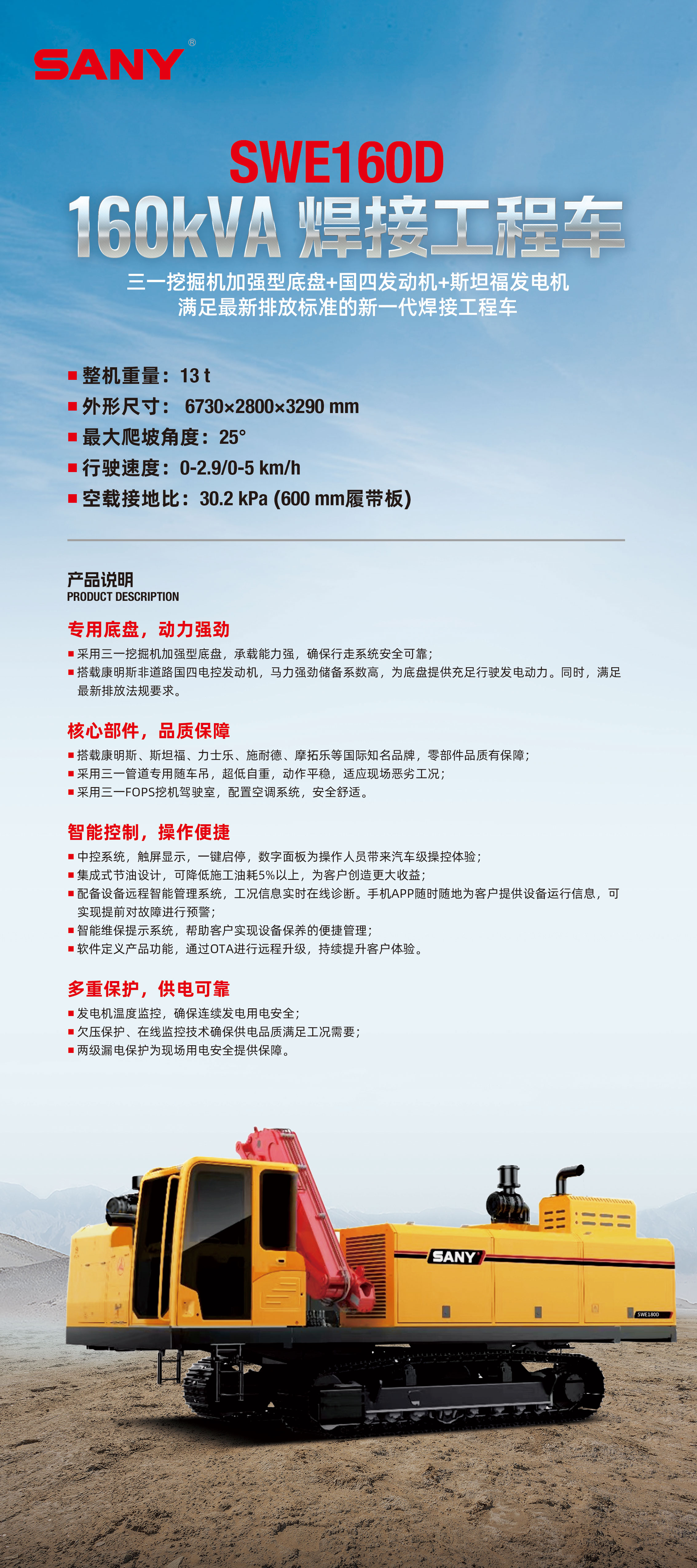 好体育投注官网能源装备新上市的SWE160D焊接工程车亮相第十二届中国国际管道大会,该款产品采用好体育投注官网挖掘机加强型底盘、国四发动机以及斯坦福发电机,是满足最新排放标准的新一代焊接工程车。