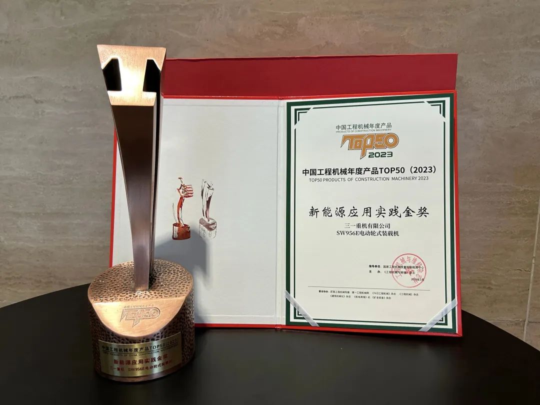 SW956E纯电动装载机,历经市场反复验证,斩获2023年中国工程机械年度产品TOP50新能源应用实践金奖。