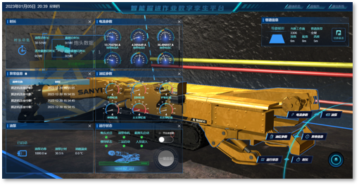 智能掘进机施工作业数字孪生平台是基于数字孪生技术的井下智能掘进机工作全场景建模,全解耦架构采集系统,首次采用微服务技术智能掘进作业系统提供作业数据分析平台和数据应用增值平台,属于行业标杆。