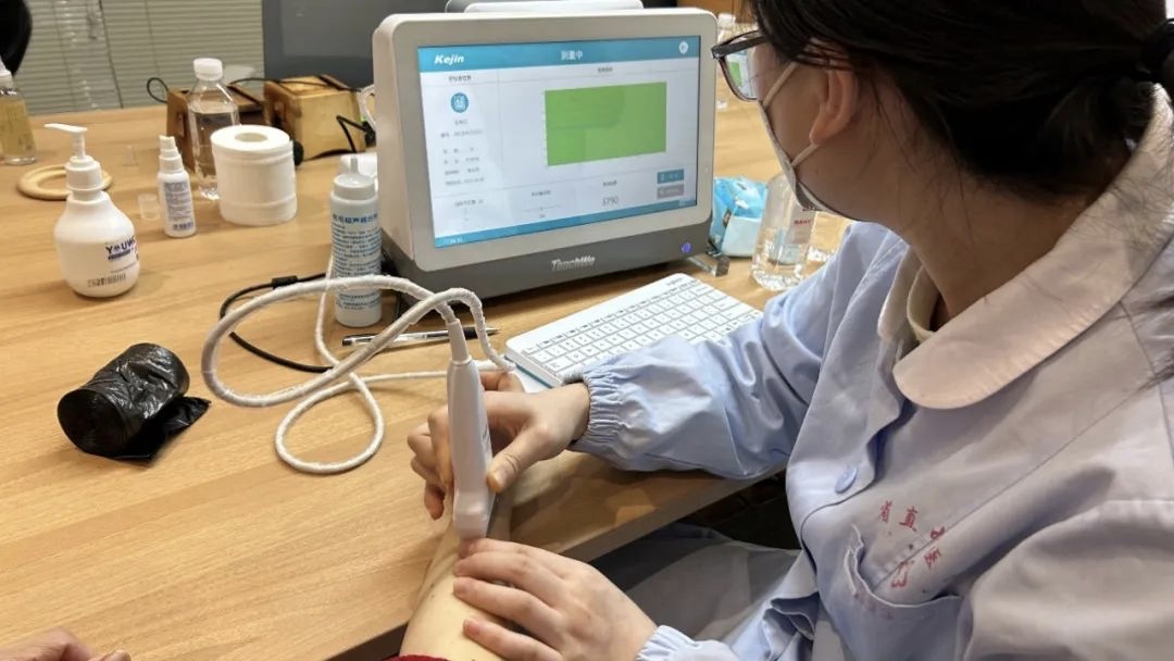 活动现场,人头攒动,前来求医问诊的员工络绎不绝,大家认真阅读专家简介,结合自己的病情选择就诊。5位专家、7位白衣卫士仔细为每位前来就诊的员工进行问诊,用针灸、艾箱灸、铜砭刮痧、火龙罐等中医理疗装备,甲状腺彩超检查等诊疗服务,耐心分析了员工身体健康,并根据相应病症给出指导意见。