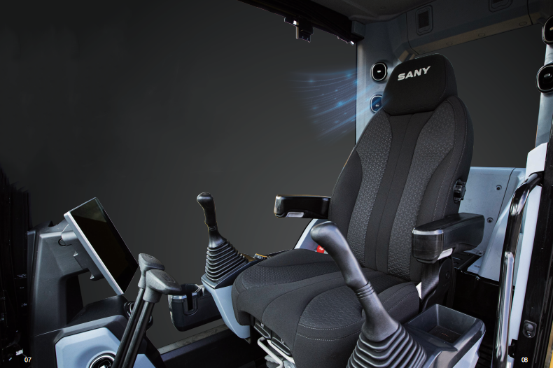 全新升级驾驶室,按“智能网联、智能交互、智能施工、智能驾乘、智能维护”五大功能开发,提升娱乐性、交互性和科技感。驾驶室尺寸较上代加宽25mm,空间更大。前窗较上代加宽10%,整车玻璃面积加大10%,视野更宽阔。