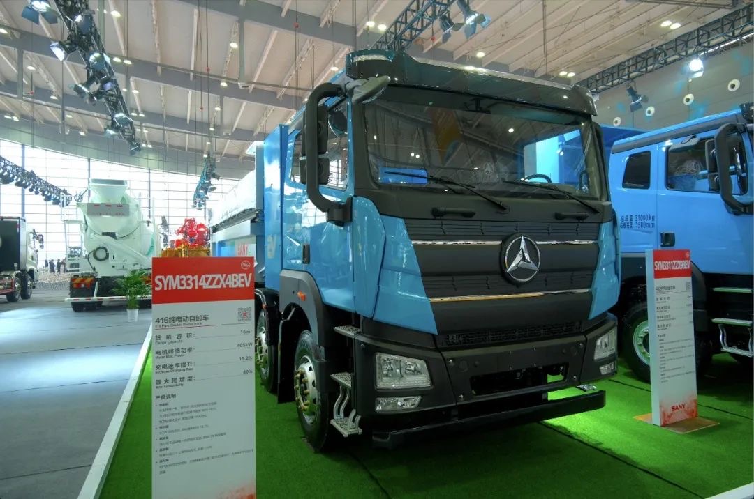 416纯电动自卸车则以低能耗、快补能、高安全、高装载、高可靠为优势。通过一景一策vcu标定,不同场景采取其对应的最优策略,达到工况的低能耗。整车轻量化设计,与市场同类产品相比,重量降低800kg,进一步降低行车能耗,续航里程可达260km。同时,补能实力过硬,采用的是500A双枪快充,充电速率提升20%,充电只需1.2小时,达到行业领先。