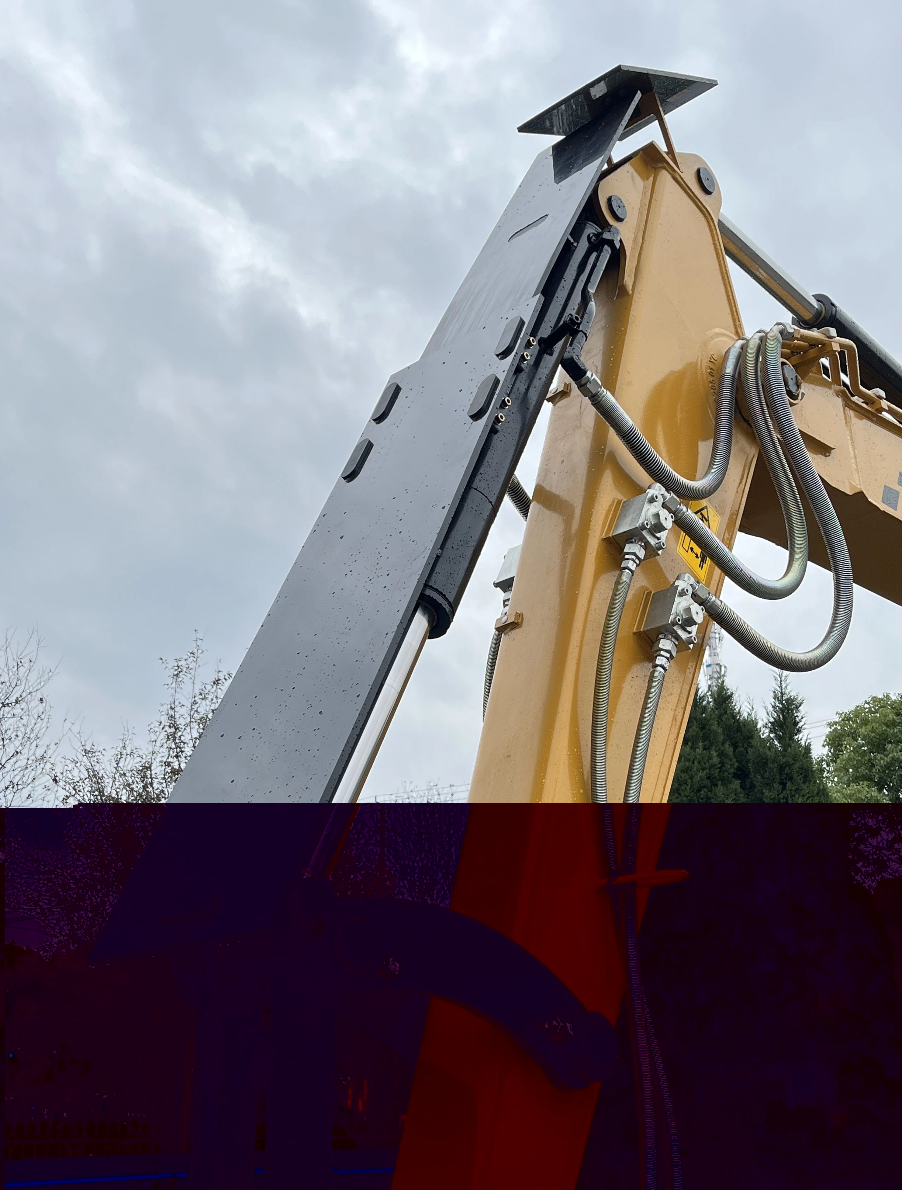 高压电防护:斗杆上方安装绝缘尼龙材质的高压电防护板,包裹充分,位置合理,防止高压电垂直引流,作业更放心。