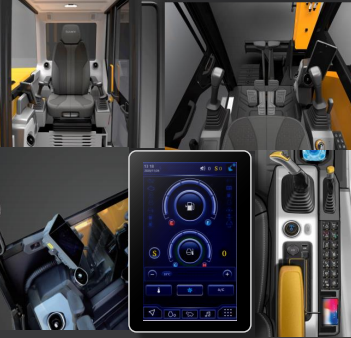 驾驶室造型全新升级,配置一键启机、多功能操控面板、7寸智能显示屏,航空座椅,科技感与舒适感兼具。