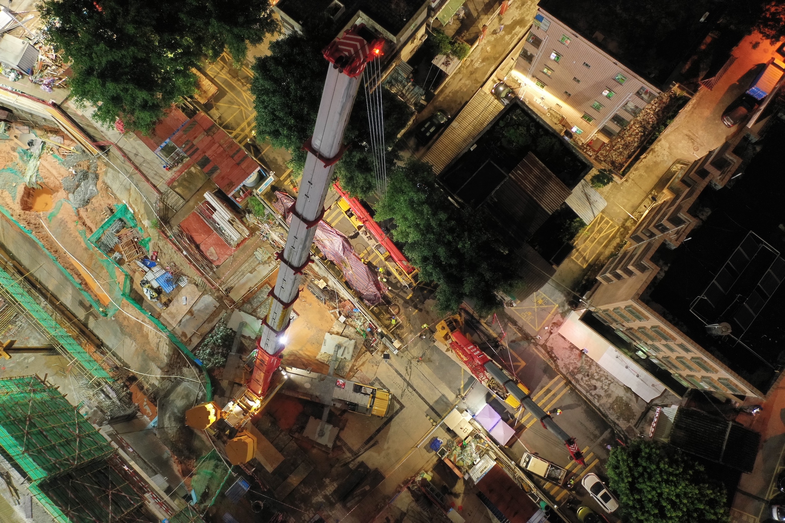 为了保证万无一失,深圳市鸿顺发装卸搬运服务部出动了SAC7500C7-8。总经理梁浩铭介绍:“这个活也只有这台750吨能干,它车身尺寸较小,带有配重变位,适合市政道路狭小空间作业。又是深圳地区吨位最大的汽车吊,起重能力有保证。不管是出于安全还是出于效率,它都是最优选。”