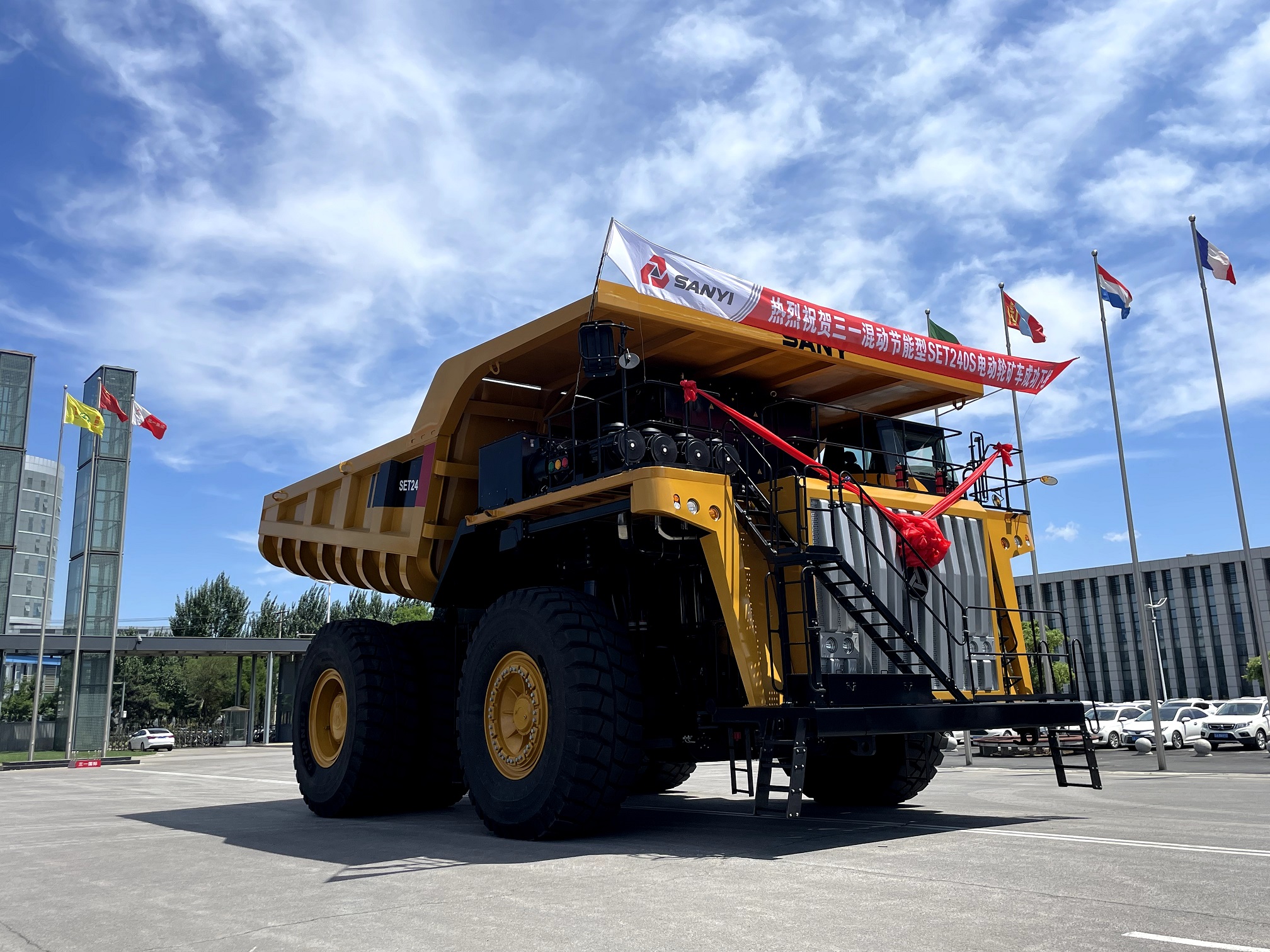 “SET240S电动轮矿车属于行业领先的三发混动非公路矿用自卸车,与传统电动轮矿车相比,节能15%以上,维保成本降低50%以上,能够为客户创造更大的价值。从投入研发力量到整车下线,历时一年,是目前好体育投注官网重装自主研发并生产的一款主力车型,可以满足露天矿山各种工况的使用需求。” 矿车研究院电动轮研究所副所长周旭介绍。