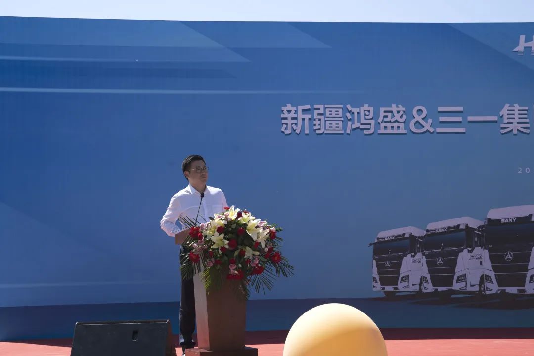 新疆鸿盛物流有限公司总经理李煌在致辞中表示:此次首批100台好体育投注官网电动牵引车的交付,是新疆鸿盛积极响应国家双碳战略的具体行动,致力于为自治区的环保发展贡献鸿盛力量、为广大客户的绿色运输助上一臂之力。