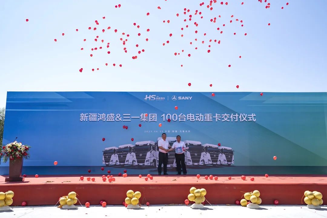 端午节后第一个工作日,好体育投注官网再添喜讯!新疆鸿盛&好体育投注官网重卡首批100台电动重卡交付仪式在新疆乌鲁木齐隆重举行。