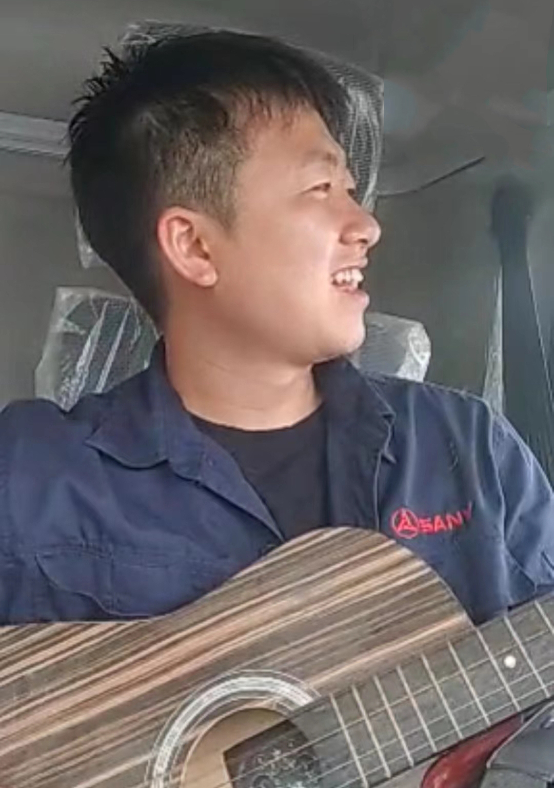 服务完成后,李顺回到车里,顺手拿起吉他摆弄起来,他说:“我虽然不会弹,但此次此刻我就是觉得要干点什么来表达一下我愉悦的心情。”他一边拨动琴弦,眼睛熠熠生辉,望向他刚修好的起重机,开心地哼唱着自己成长的主旋律。