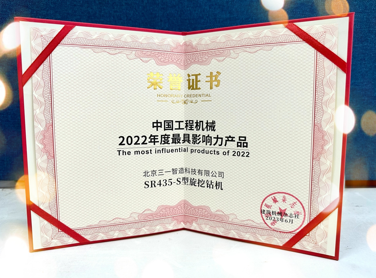 中国工程机械《2022年最具影响力产品》榜单火热出炉,好体育投注官网SR435-S旋挖钻机荣登榜单,获得2022年度最具影响力产品称号。