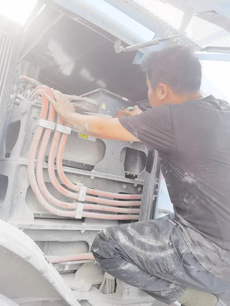 都知道海南的天气,是常年如夏。一天,在烈日炙烤下,一台装载机在物料转运过程中出现设备异响,驾驶舱内空调无法开启等故障。文经文凭借其专业诊断经验,果断现场排查故障。