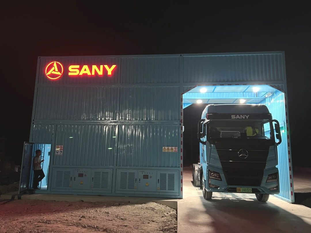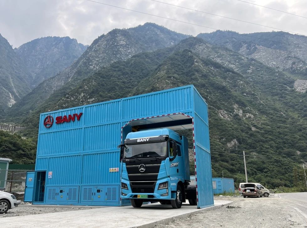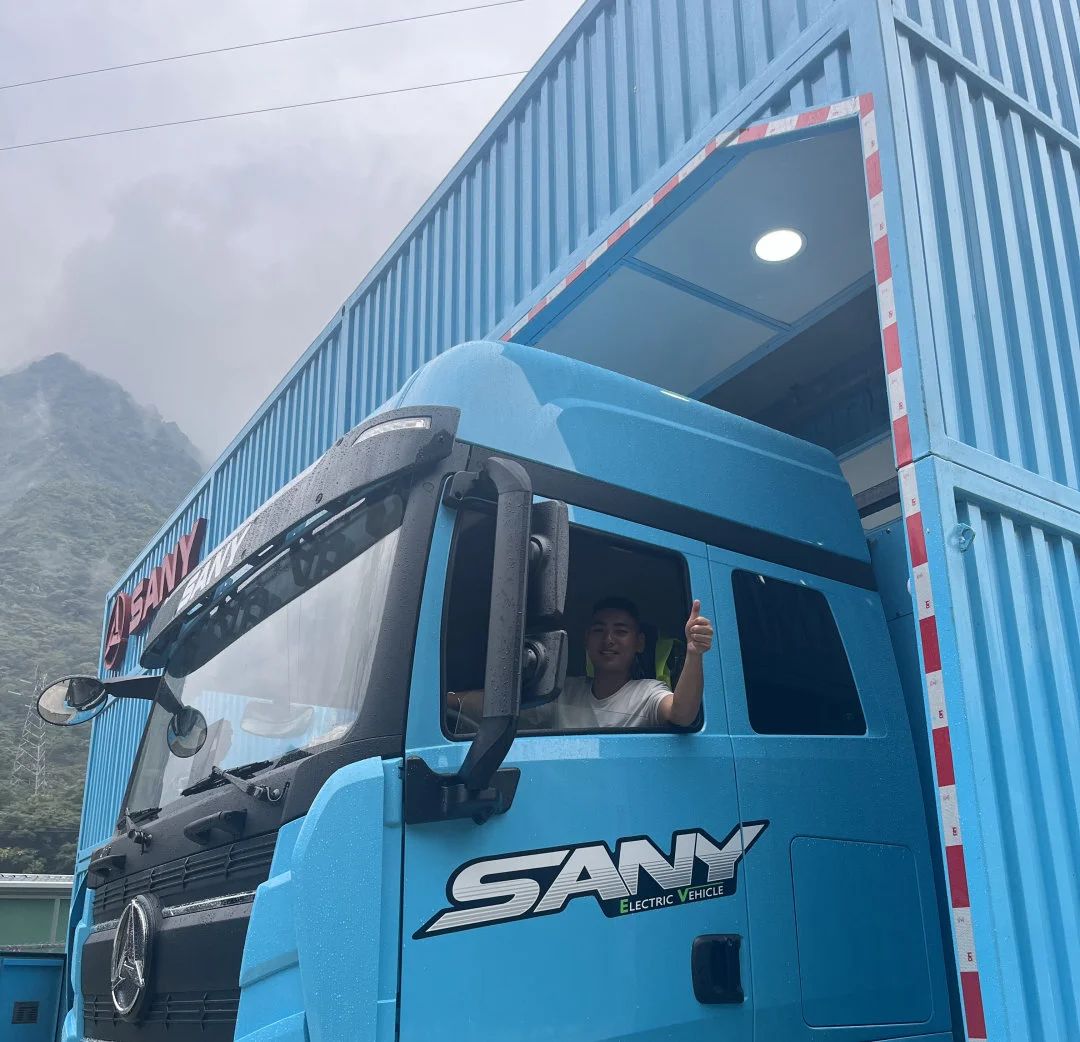 今年7月,积极推进车队绿色运输转型,首批购入10台350度电量的好体育投注官网电动重卡江山EV550,充换电一体,全力服务建筑材料运输。