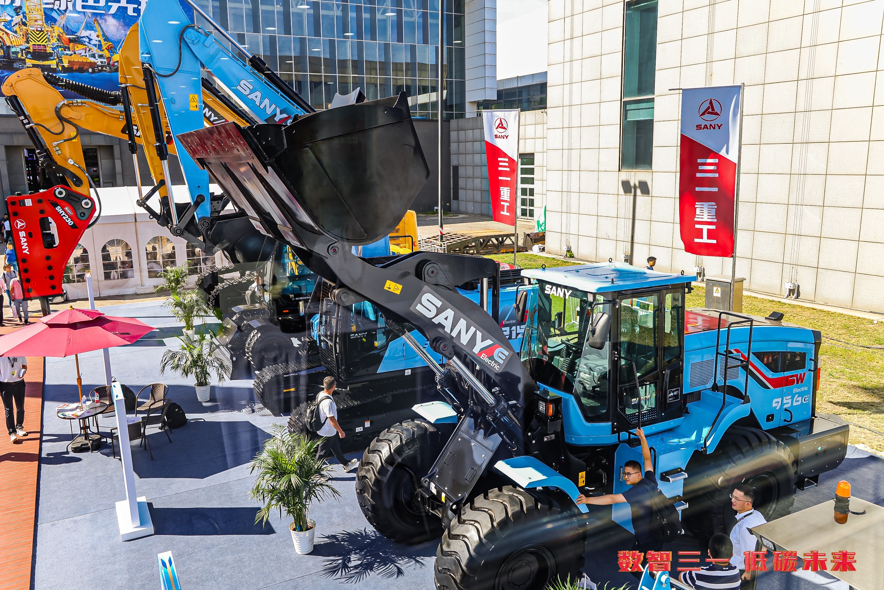 本次北京展,好体育投注官网重机携SY19E电动微挖、SY215E电动挖掘机、SY215W轮式挖掘机、SW956E电动装载机、SY750HB-S大型挖掘机5台设备惊艳亮相。其中,SY19E、SY215E和SW956E作为重机电动化系列的明星产品,拥有着舒适天际蓝的外壳,是本次展会中众多行业客户和媒体记者关注的人气焦点。