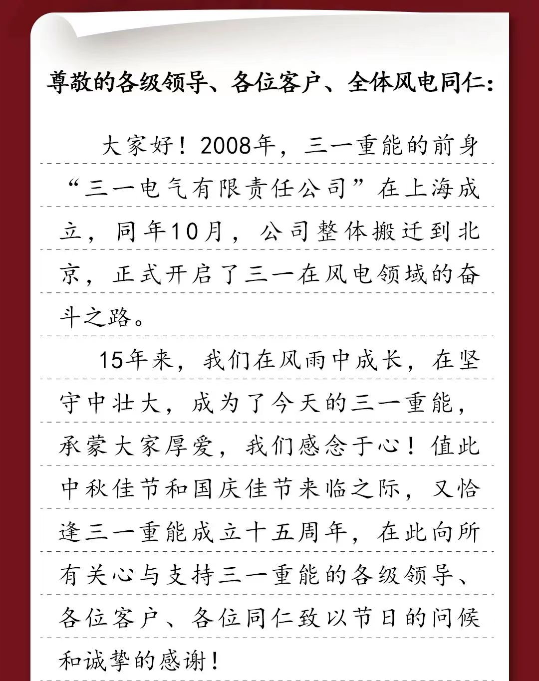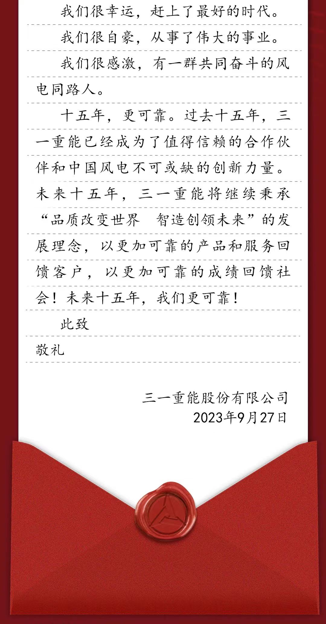 十五年 更可靠|一封来自好体育投注官网重能的感谢信