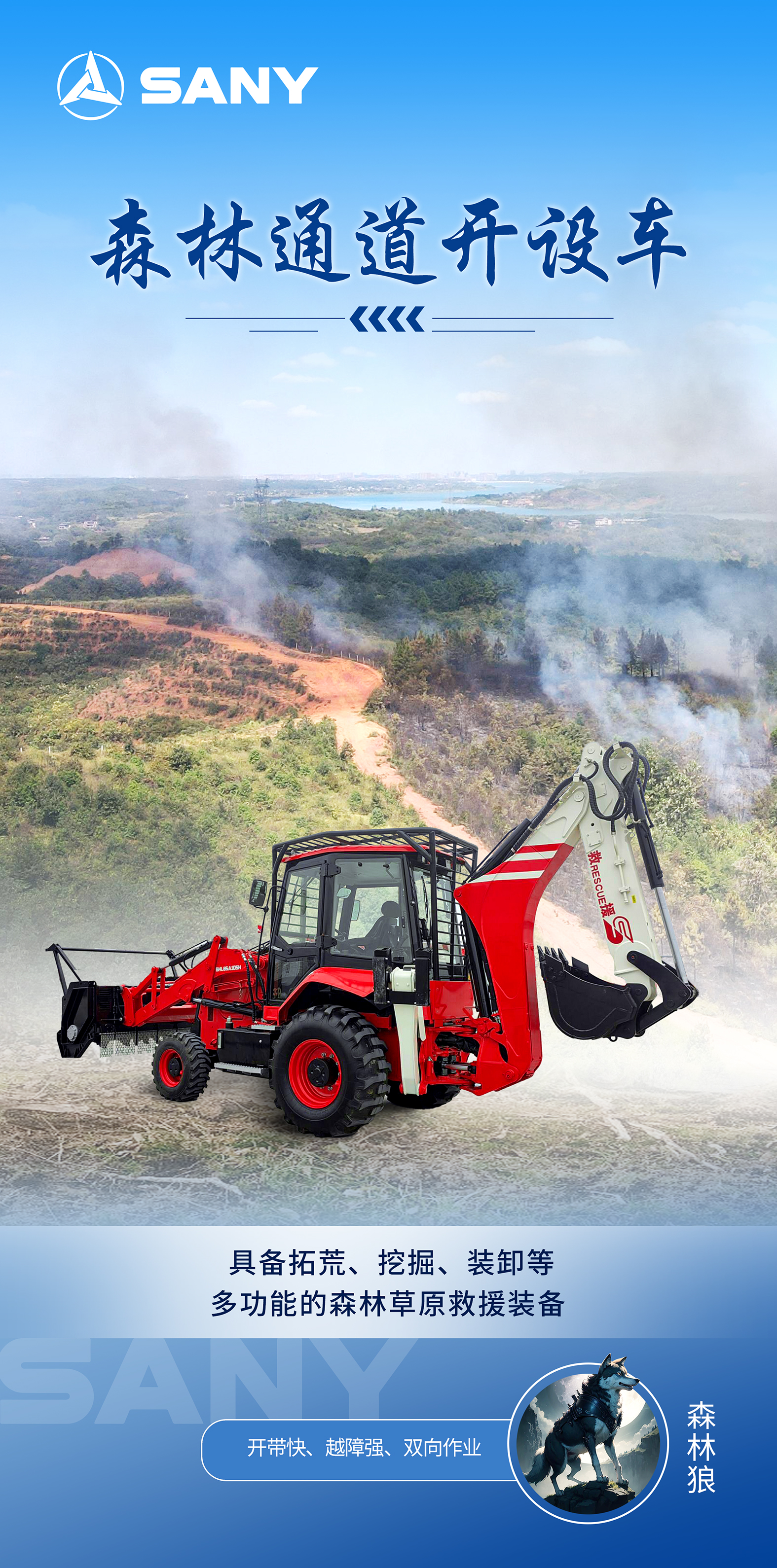 森林通道开设车用于丘陵、草原等防火通道及隔离带开设、可燃物清理、路面填平修复、救援通道打通等,具备拓荒、挖掘、装载及抱夹等功能。