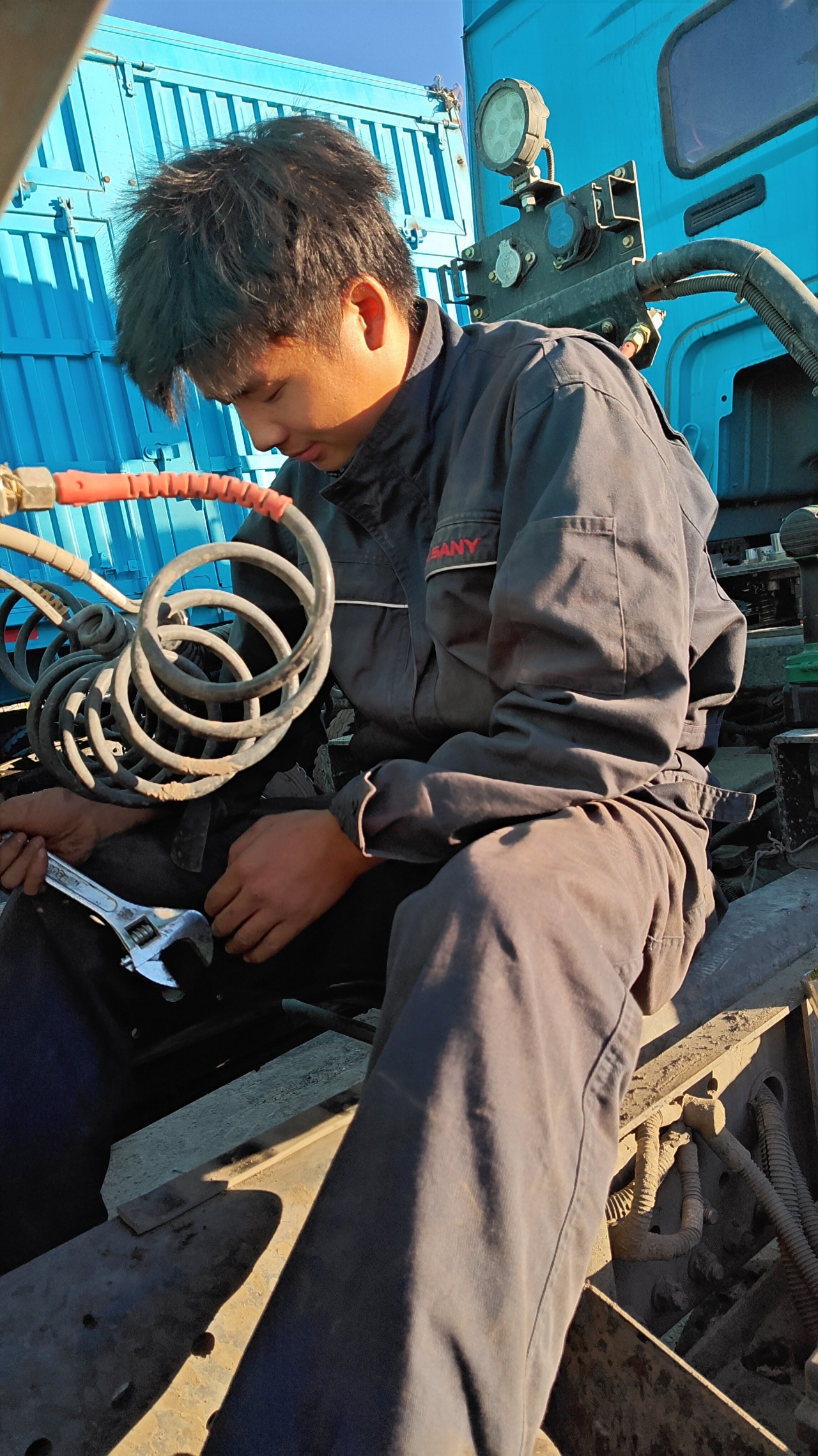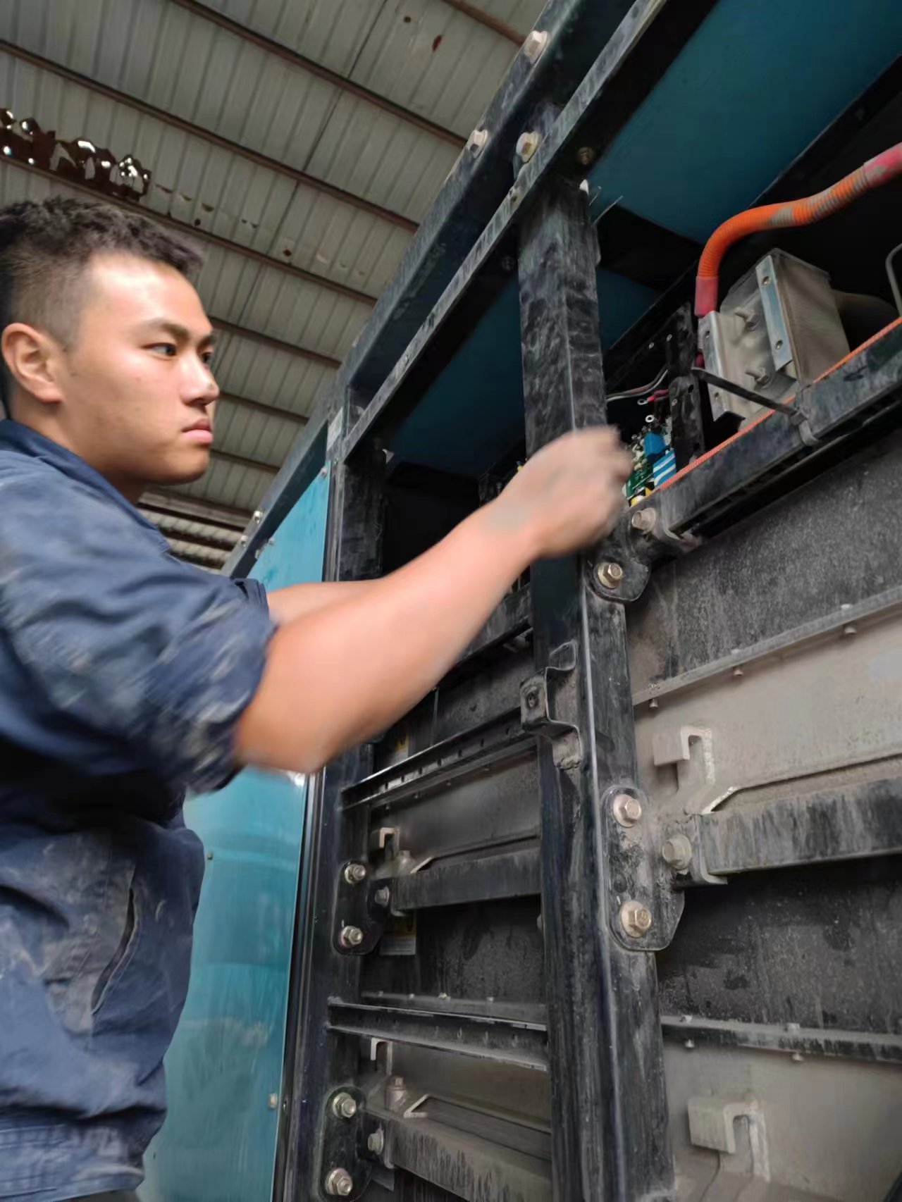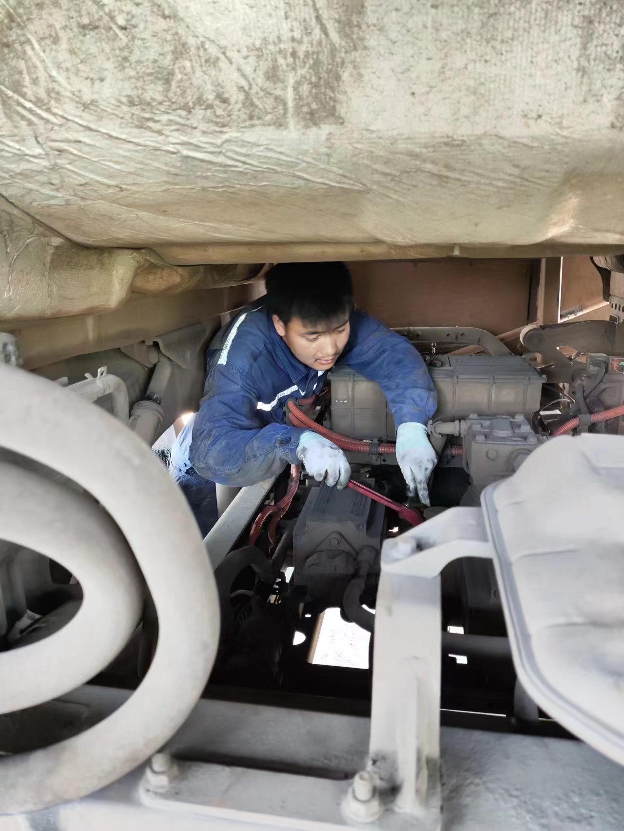 好体育投注官网电动重卡服务工程师刘家伟、鲁净存、王俊杰,中秋国庆坚守岗位6天,在新疆哈密市,顶着40℃高温,赶在寒冬来临之前为哈密市某大客户的125台车辆,完成充电座、车辆暖风、手刹等各项性能和配件整体检修。