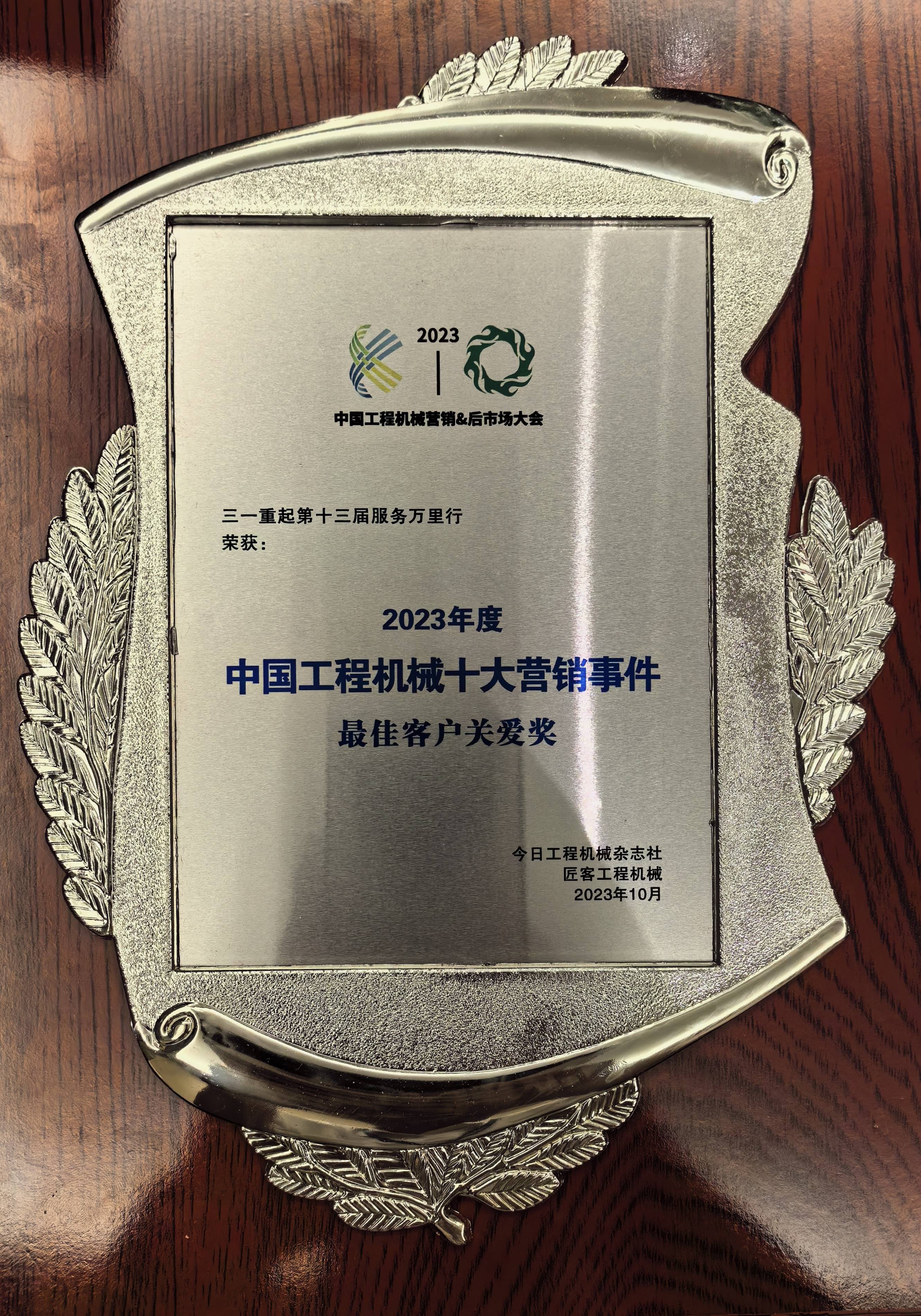 10月18日,2023中国工程机械十大营销事件正式发布,好体育投注官网起重机第十三届服务万里行活动获评“最佳客户关爱奖”。