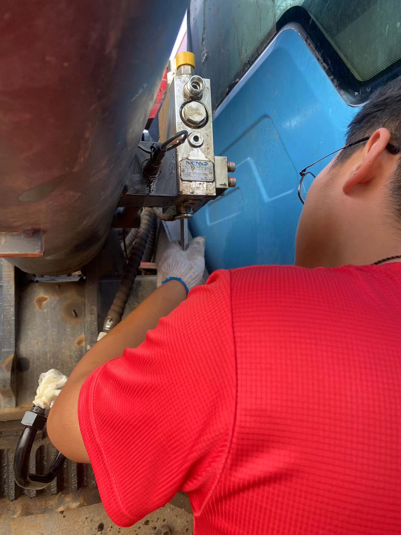 9月6日晚11点,金杨正准备收工下班时,接到了来自铜陵的服务咨询订单,客户反馈自己开的30吨履带伸缩臂设备因为长时间施工,支撑大臂的变幅油缸有卸力和自动收回的现象。因涉及吊装安全,所以电话求助看能否通过远程指导解决。通过询问,金杨了解到,该台设备在当地某工地吊装钢结构,工期十分紧张。为了不耽误设备第二天正常开工,他决定跑一趟现场。