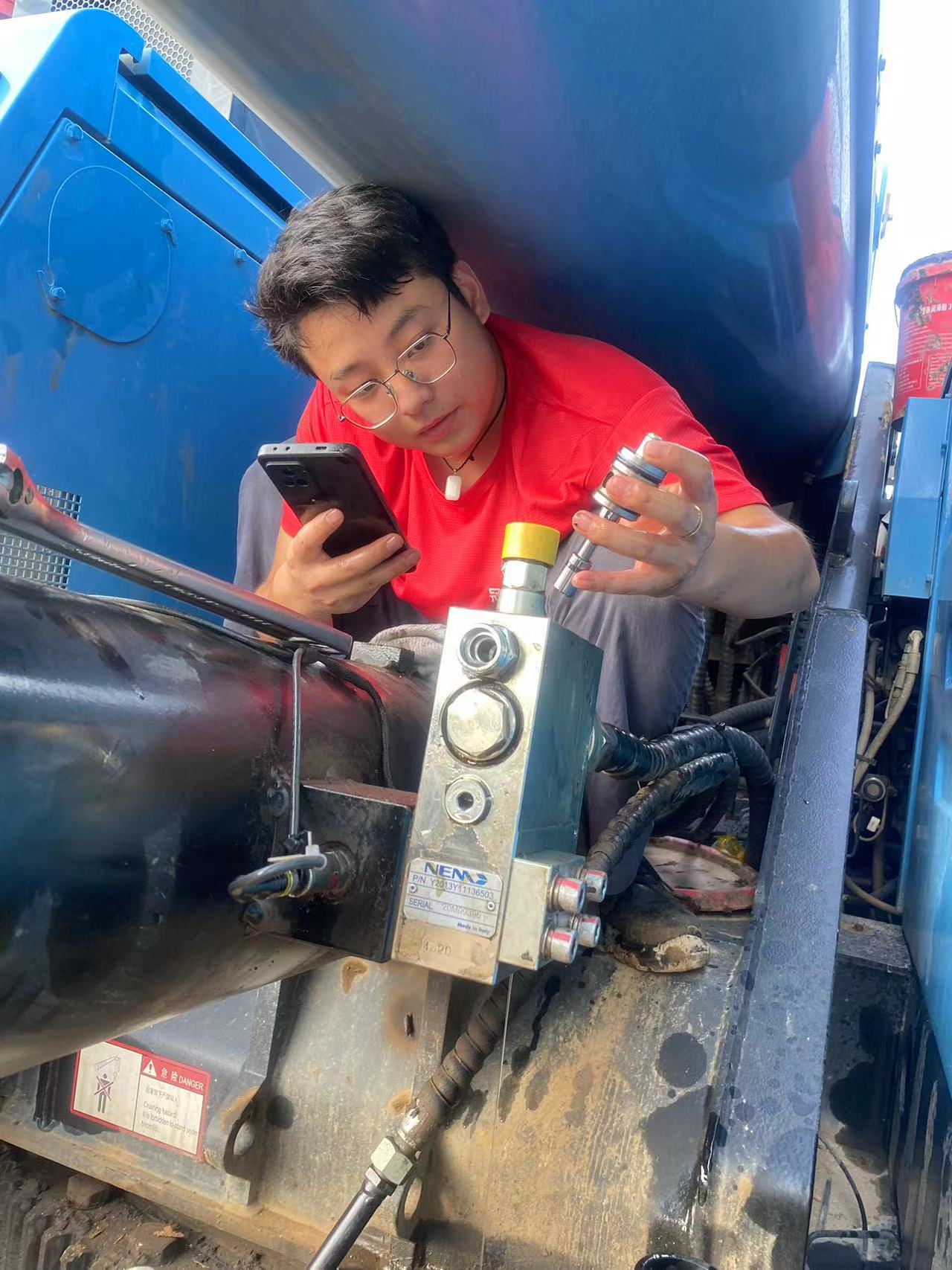 服务工程师金杨目前负责淮南区域的好体育投注官网履带起重机售后服务工作,他是“00后”,年纪轻干活却一丝不苟。