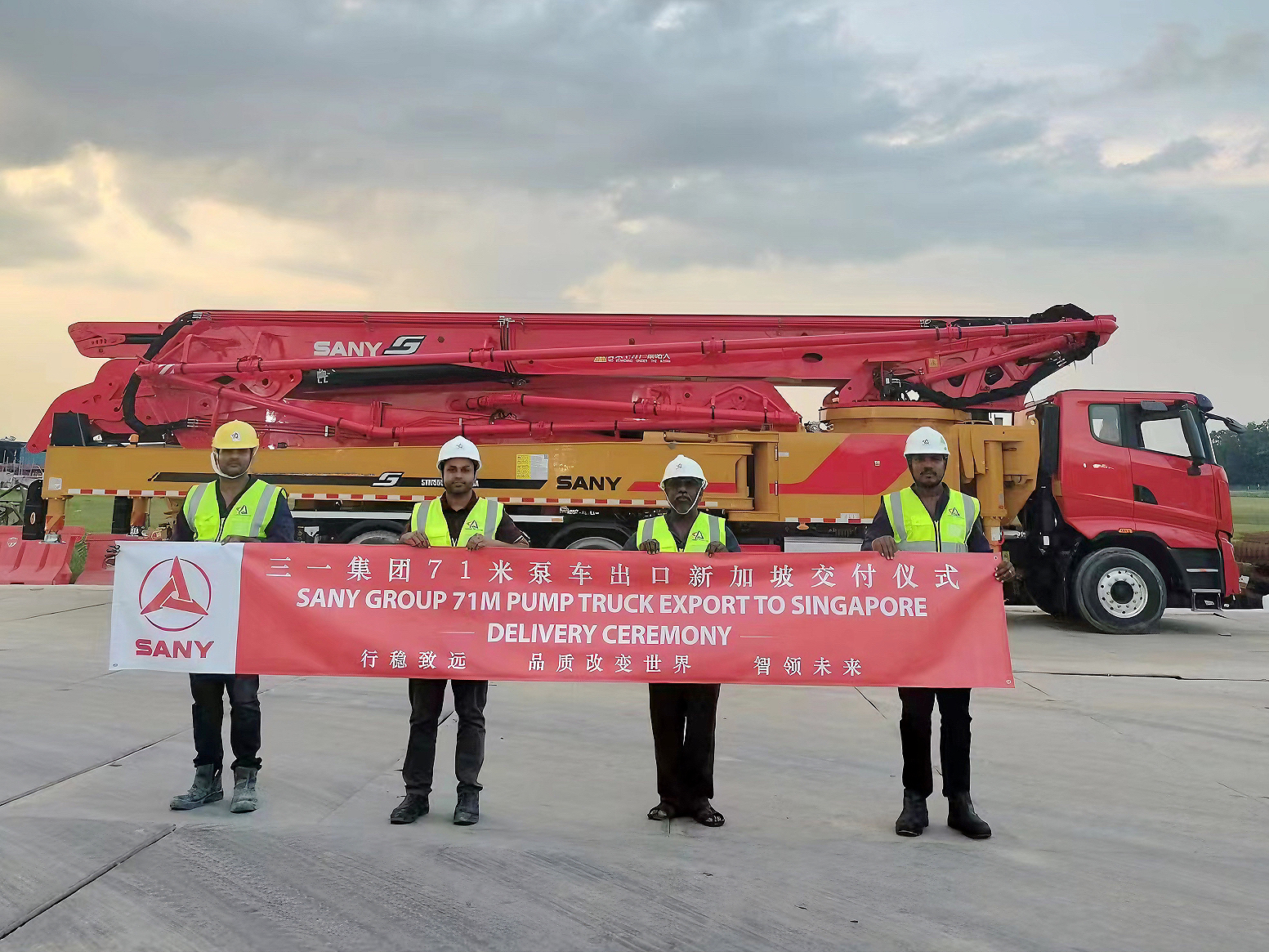 10月30日,首台出口海外的好体育投注官网重工S系列71米泵车在新加坡成功交付,创下国内出口新加坡最长臂架泵车纪录!这不仅是好体育投注官网重工在泵车领域走向国际化的又一次重大突破,也是在“一带一路”上,好体育投注官网与客户开启合作的新篇章。