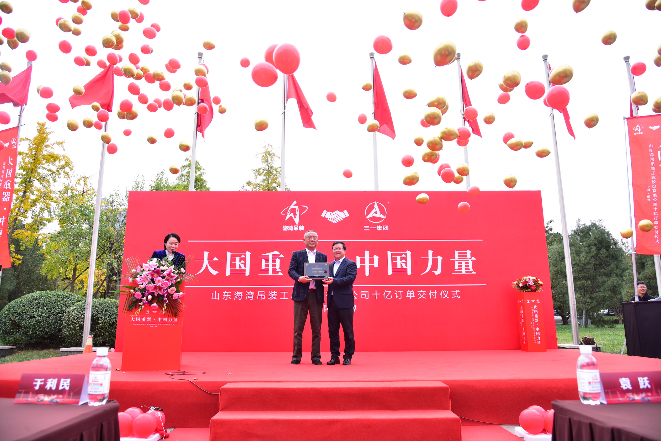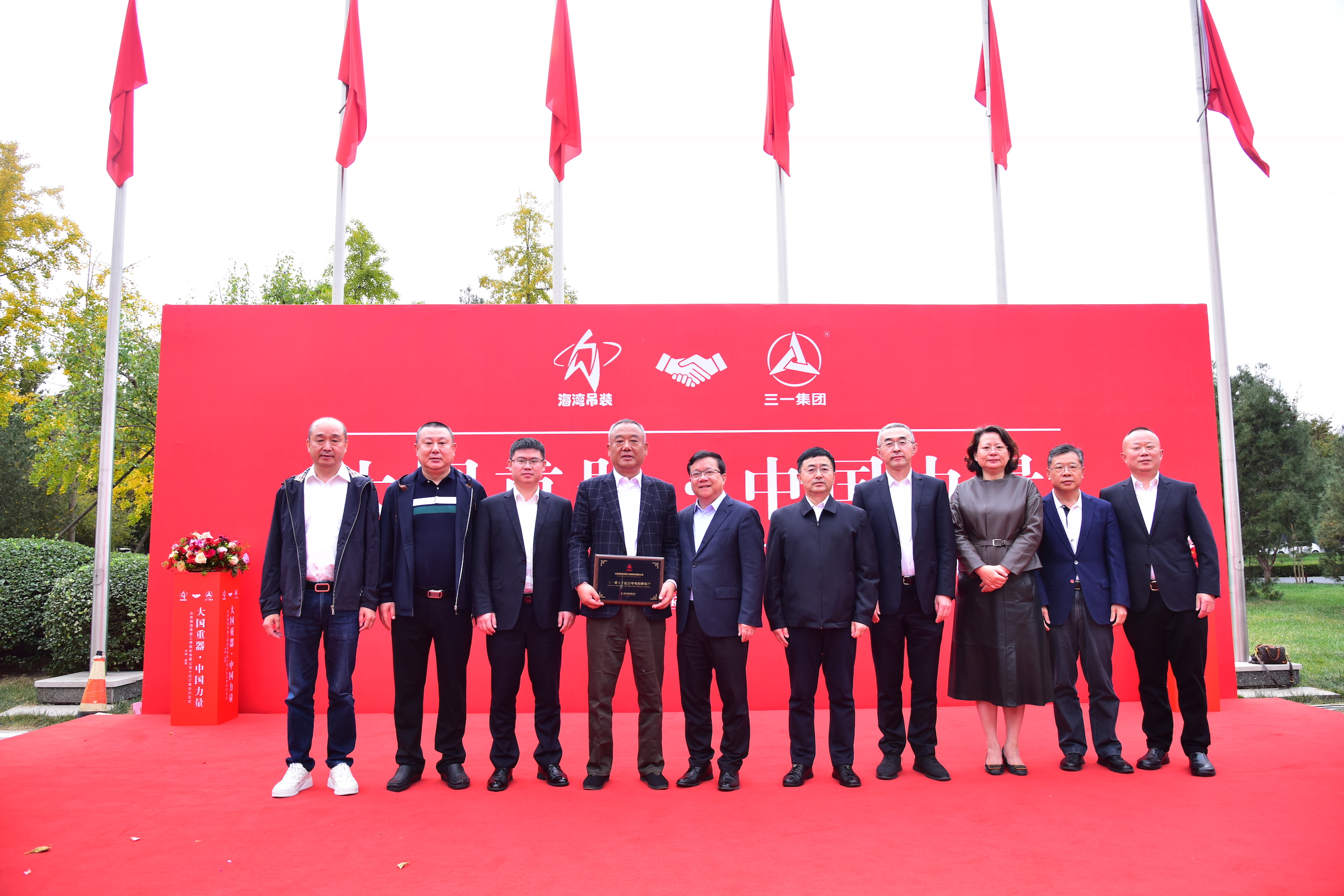 11月3日,山东淄博,好体育投注官网重工与山东海湾吊装工程股份有限公司圆满完成“十亿订单”交付。