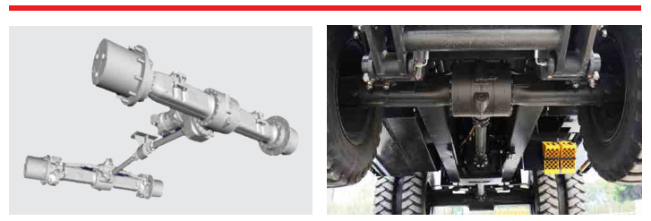 前桥采用独特的双平衡液压悬挂系统,当遇到路面不平时,悬挂系统能够自动调节前桥倾斜角度,使驾驶室保持水平,降低整车颠簸感,提高乘员舒适性。