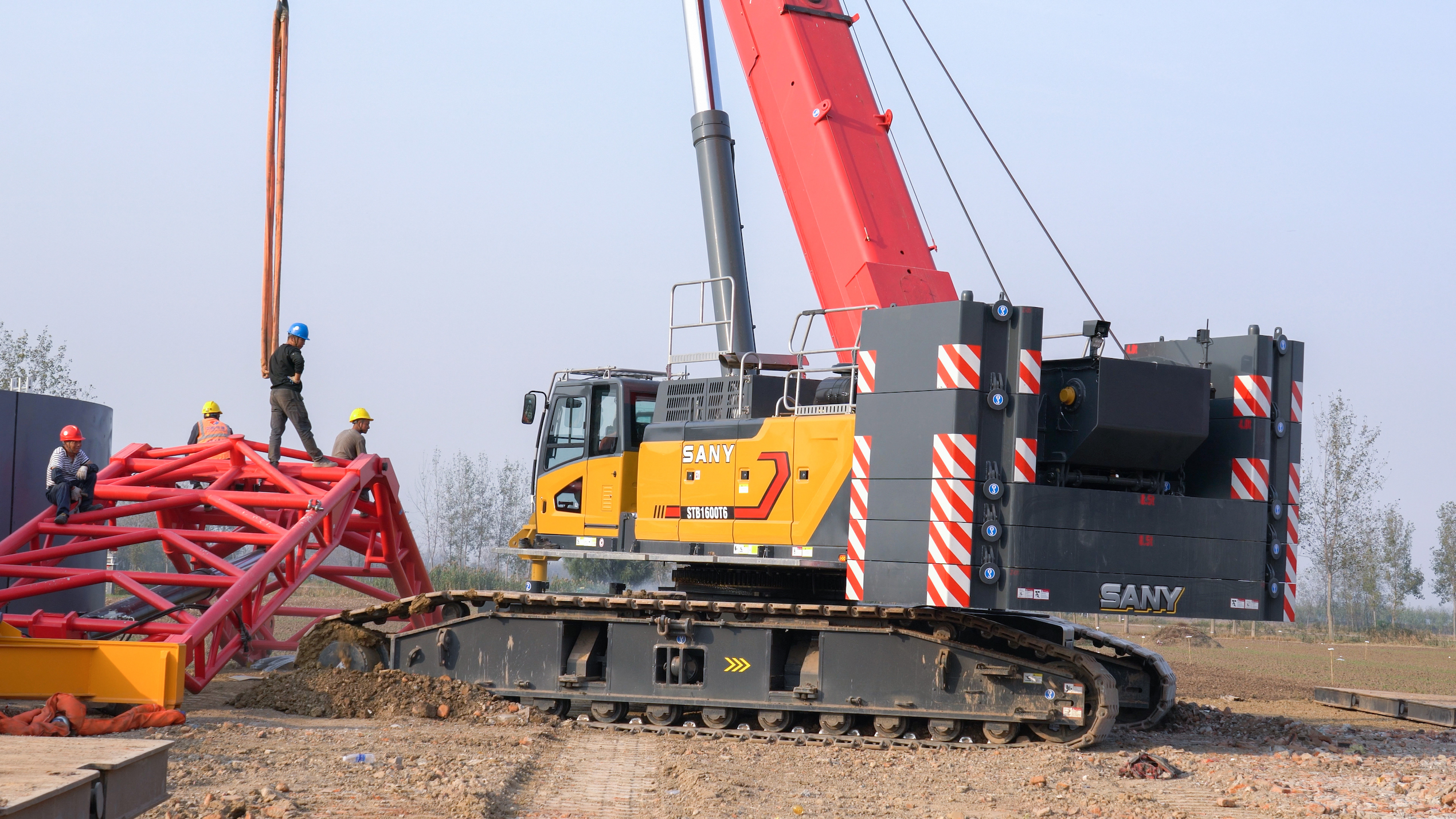 为了解决这个问题,施工方找来了STB1600T6伸缩臂履带起重机作为帮手。