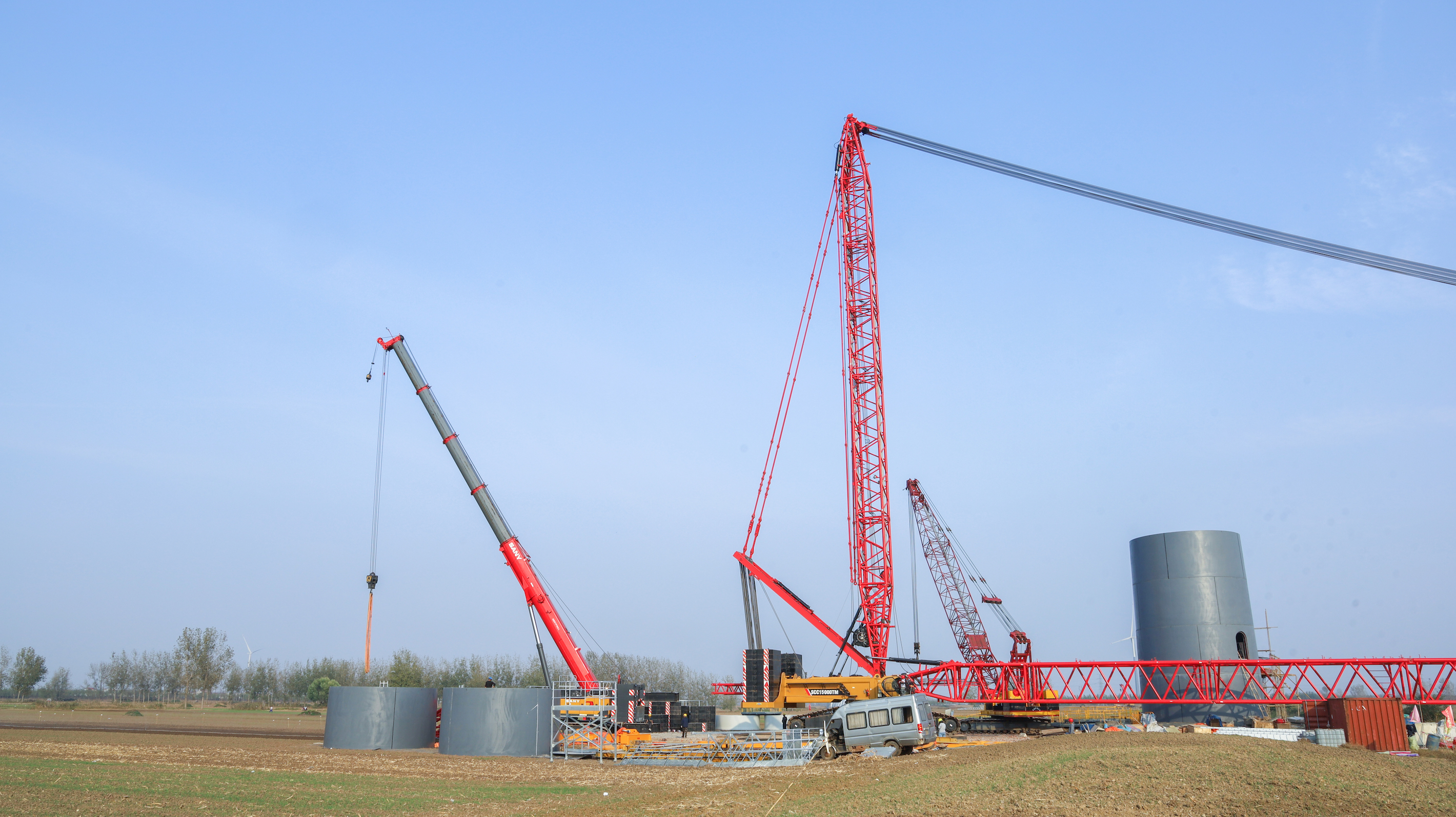 随着14号机位混塔管片的成功组装对接,国能灵璧浍沟70兆瓦风电项目首台混塔风机完成吊装。好体育投注官网SCC15000TM履带起重机担任主吊。