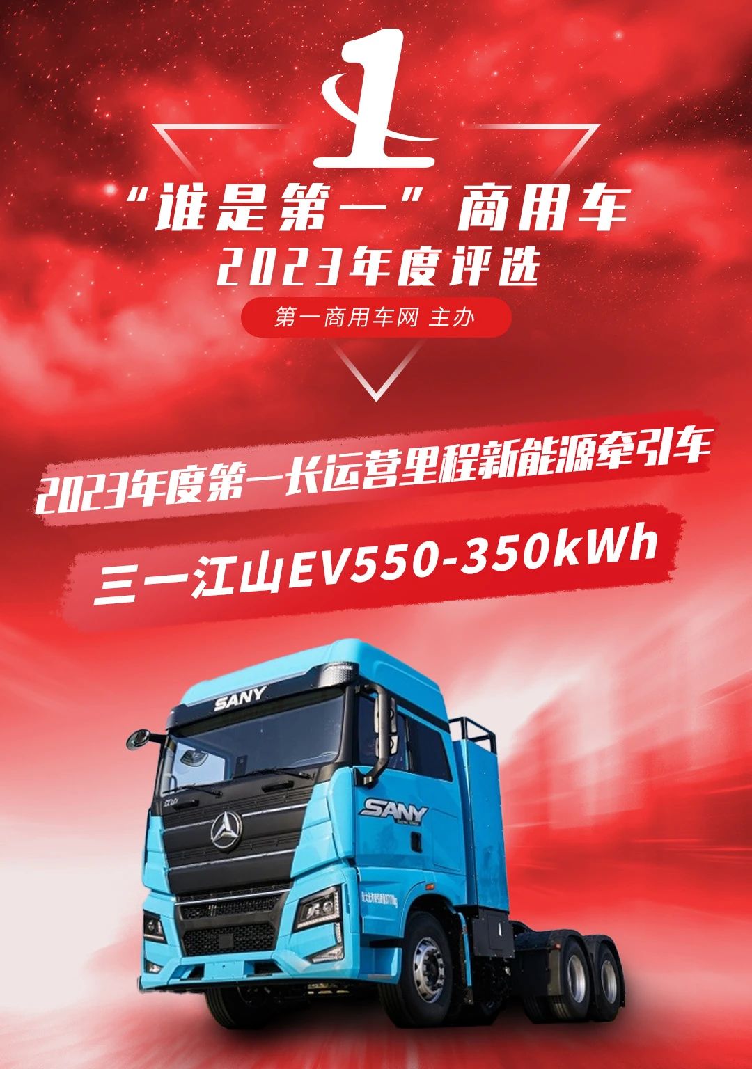 江山EV550-350kWh以实例和口碑斩获“2023年度第一长运营里程新能源牵引车”,在高效运营、性能稳定方面,在为客户持续创造价值方面,处于行业领先地位。